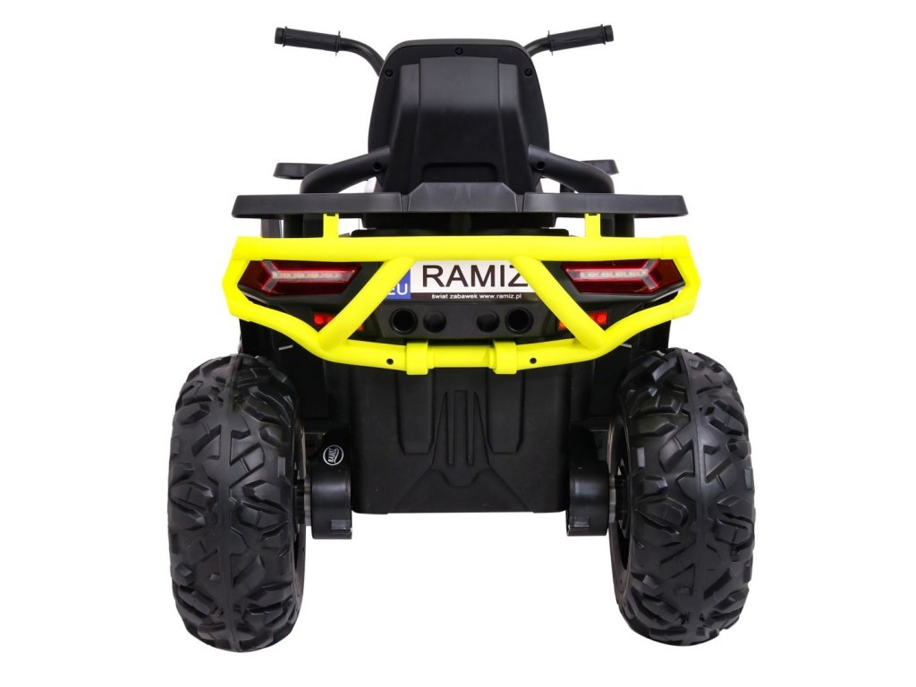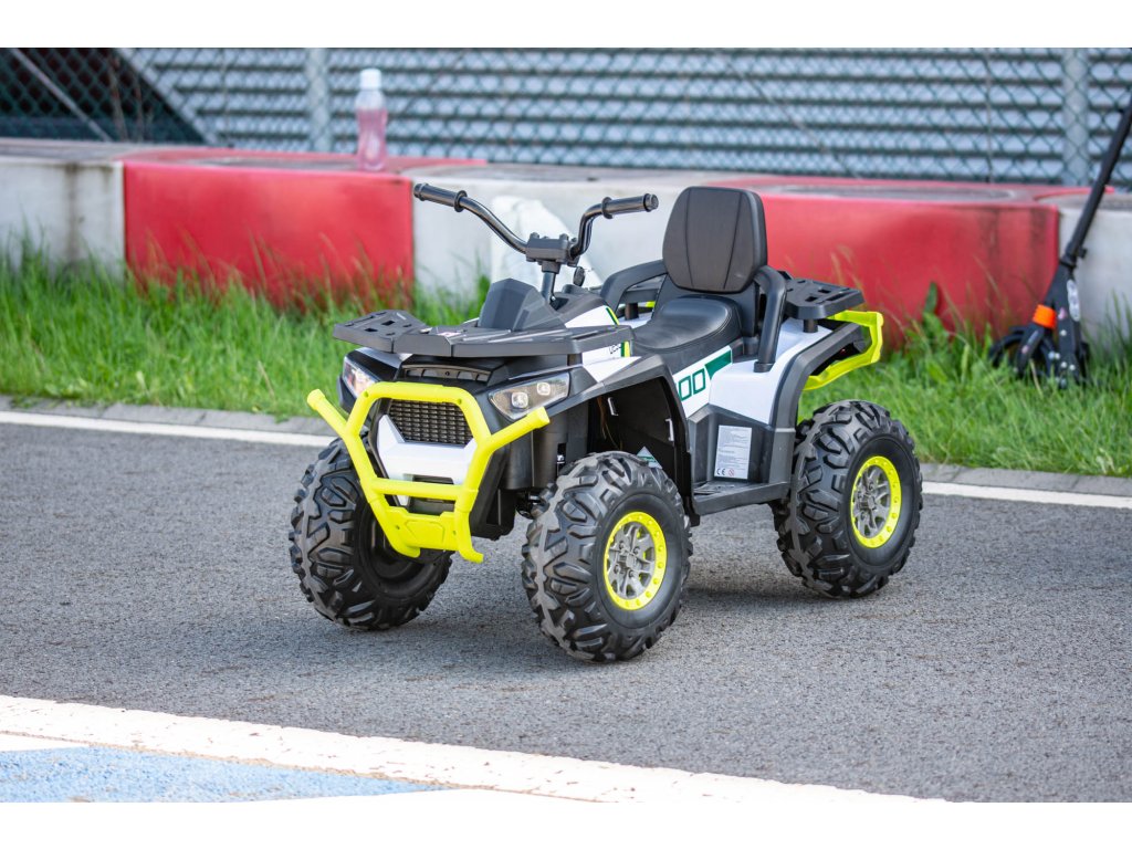 Dětská elektrická čtyřkolka je vybavena čtyřmi elektrickými motory a širokými koly z Eva materiálu. Čtyřkolka hravě zvládne různé typy terénu, nezpevněný povrch i kopce.