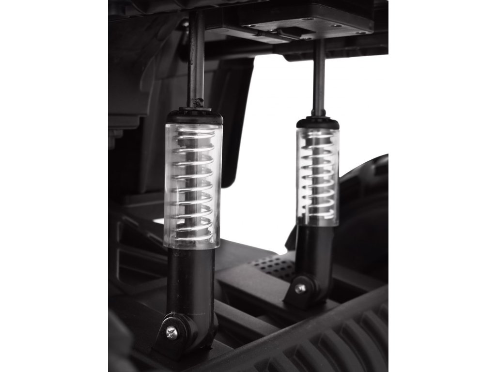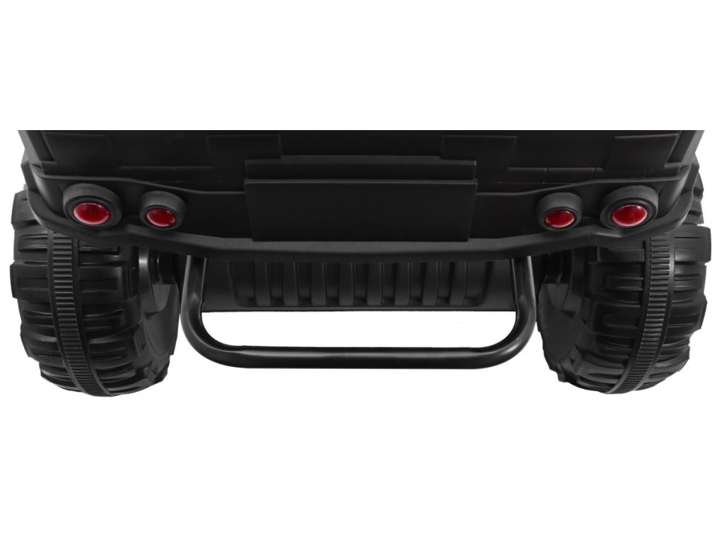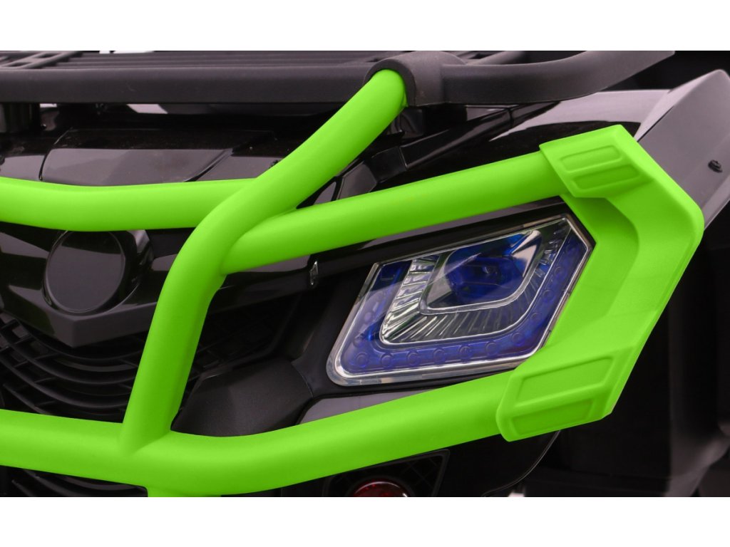 Čtyřkolka vás zaujme svým vybavením jako jsou přední LED světla a hudební panel, který má vstup pro MP3, SD kartu, AUX a USB, FM rádio, Bluetooth a tlačítka s předehranými melodiemi a klaksonem. Čtyřkolka má přední a zadní tlumiče nárazu. Při startování uslyšíte zvuky motoru.