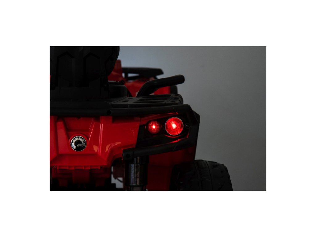 Mezi vybavení patří hudební panel se vstupy USB, MP3, Rádio, AUX, Bluetooth a předem nahranými melodiemi. Čtyřkolka ATV má přední i zadní světla, umožňuje jízdu ve všech směrech a její nosnost je do 50 kg.