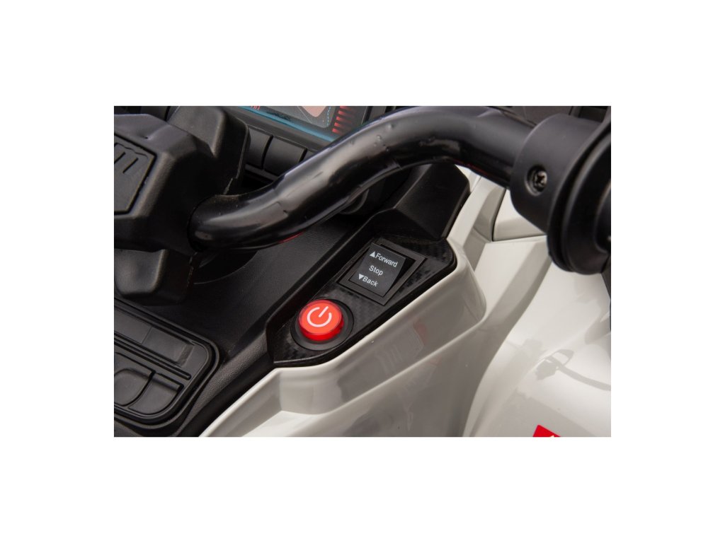 Mezi vybavení patří hudební panel se vstupy USB, MP3, Rádio, AUX, Bluetooth a předem nahranými melodiemi. Čtyřkolka ATV má přední i zadní světla, umožňuje jízdu ve všech směrech a její nosnost je do 50 kg.