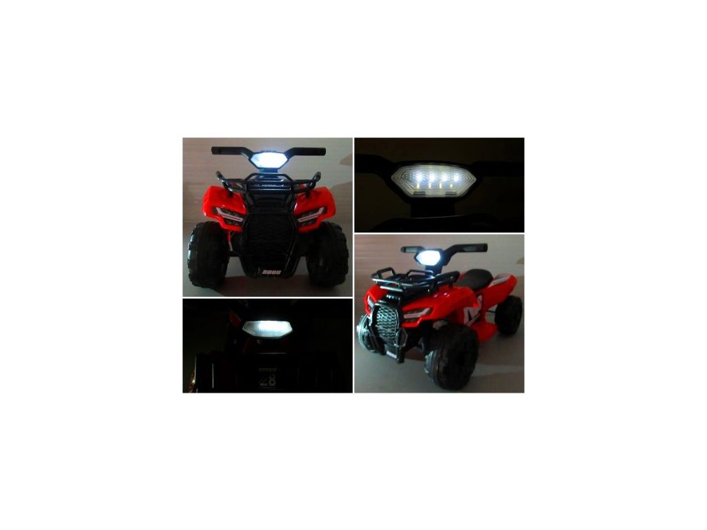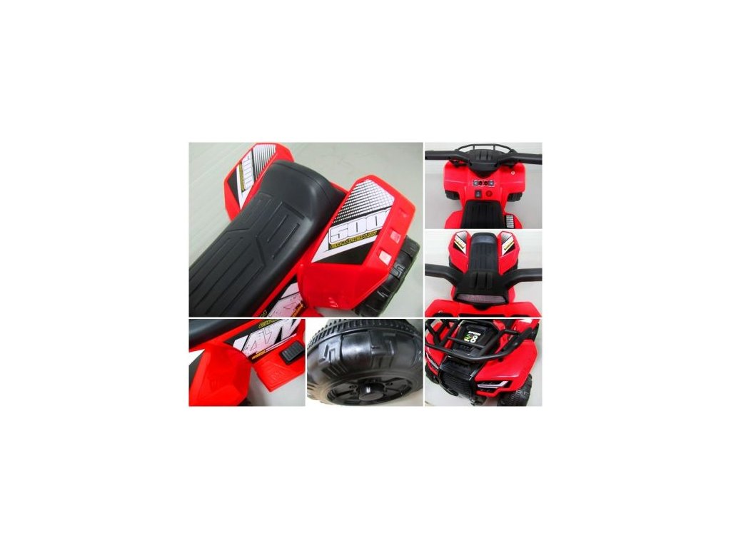 Dětská elektrická čtyřkolka je vybavena motorem o výkonu 35W a širokými koly. Čtyřkolka hravě zvládne různé typy terénu, nezpevněný povrch i zahradu.