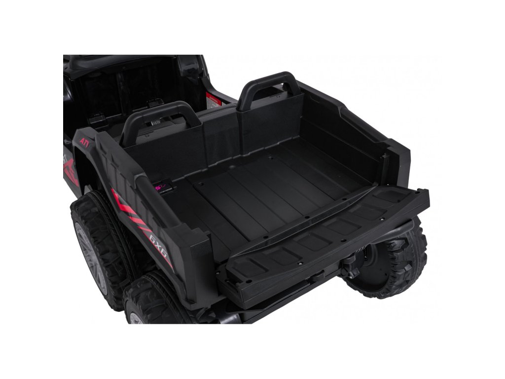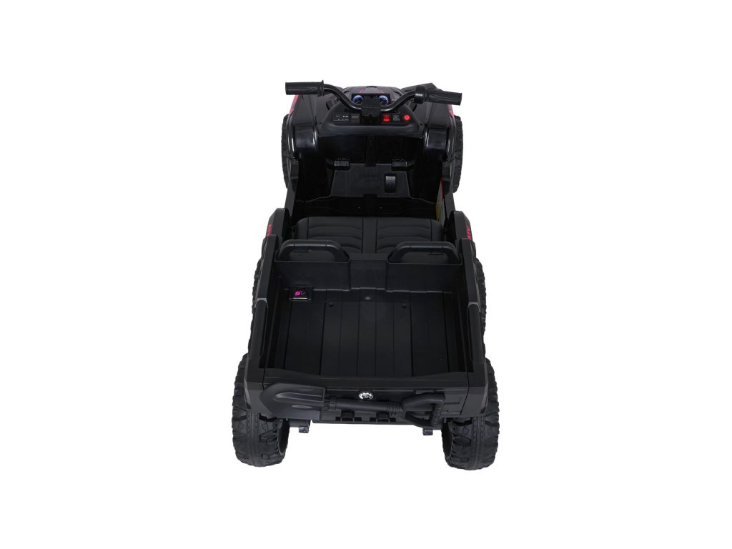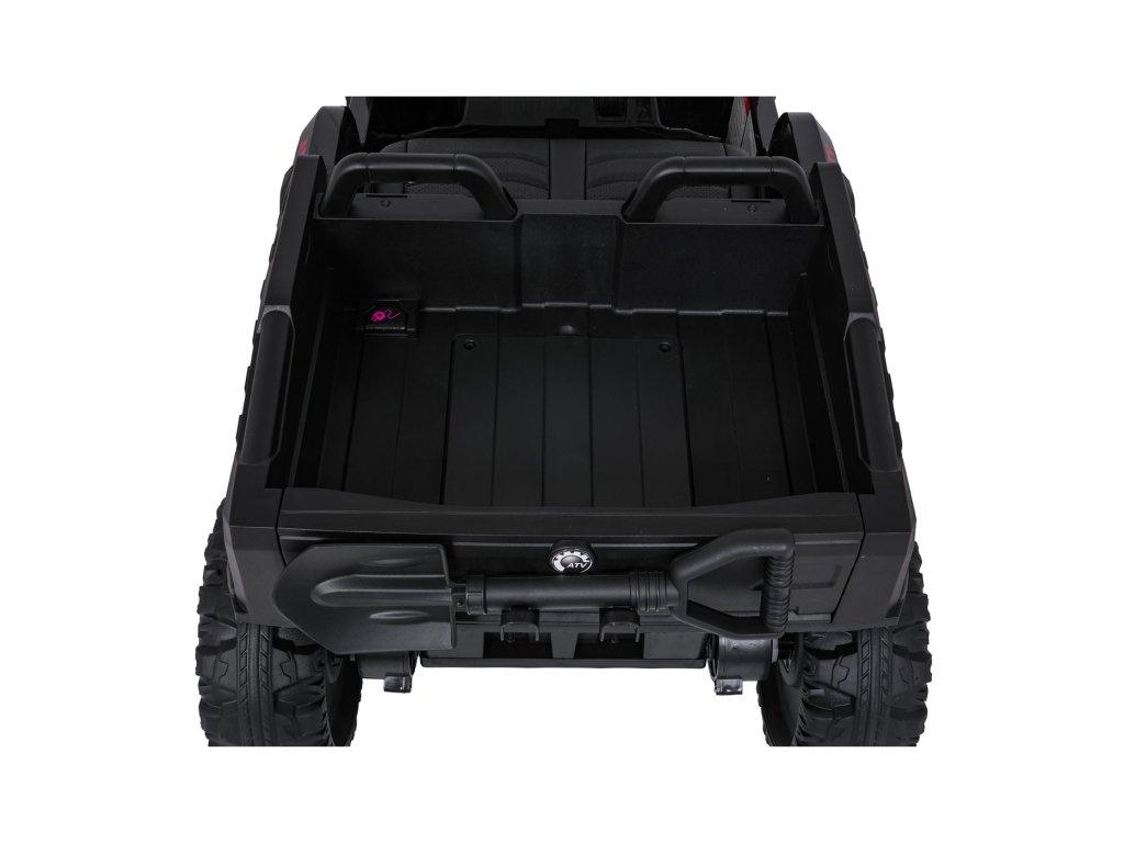 Součástí výbavy jsou také přední LED světla, otevíratelné dveře a prostorný kufr o rozměrech 42 x 28 x 10 cm. Hudební panel nabízí MP3 přehrávač, Bluetooth, USB vstup a tlačítka s melodiemi a klaksonem přímo na volantu. Indikátor nabití baterie umožní mít neustále přehled o stavu vozítka.