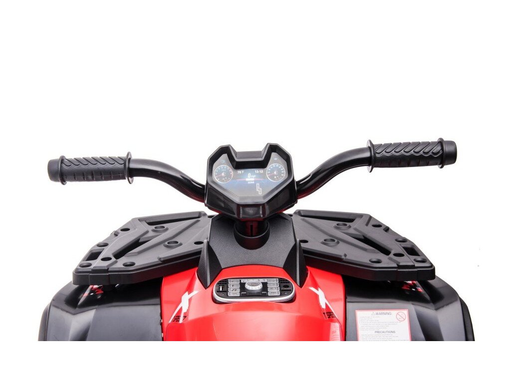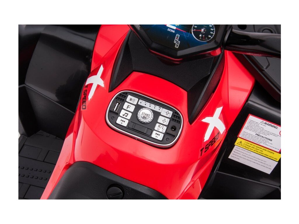 Mezi vybavení patří hudební panel s USB, Rádiem, Bluetooth a předem nahranými melodiemi. Čtyřkolka má přední světla, umožňuje jízdu ve všech směrech a její nosnost je do 59 kg.