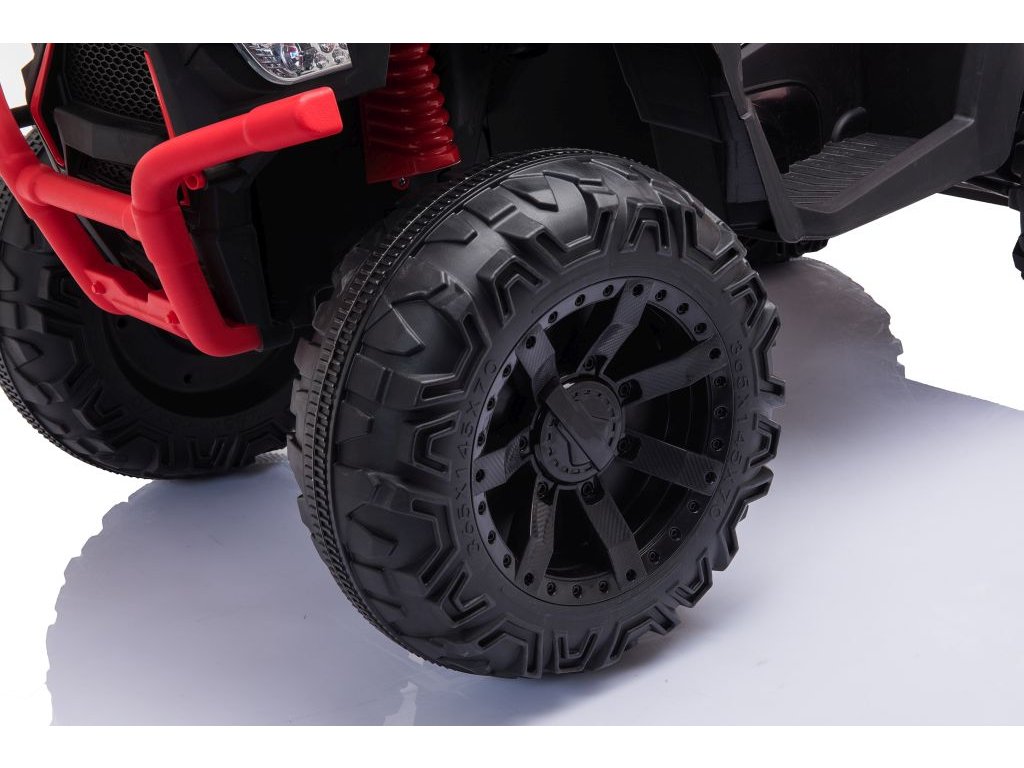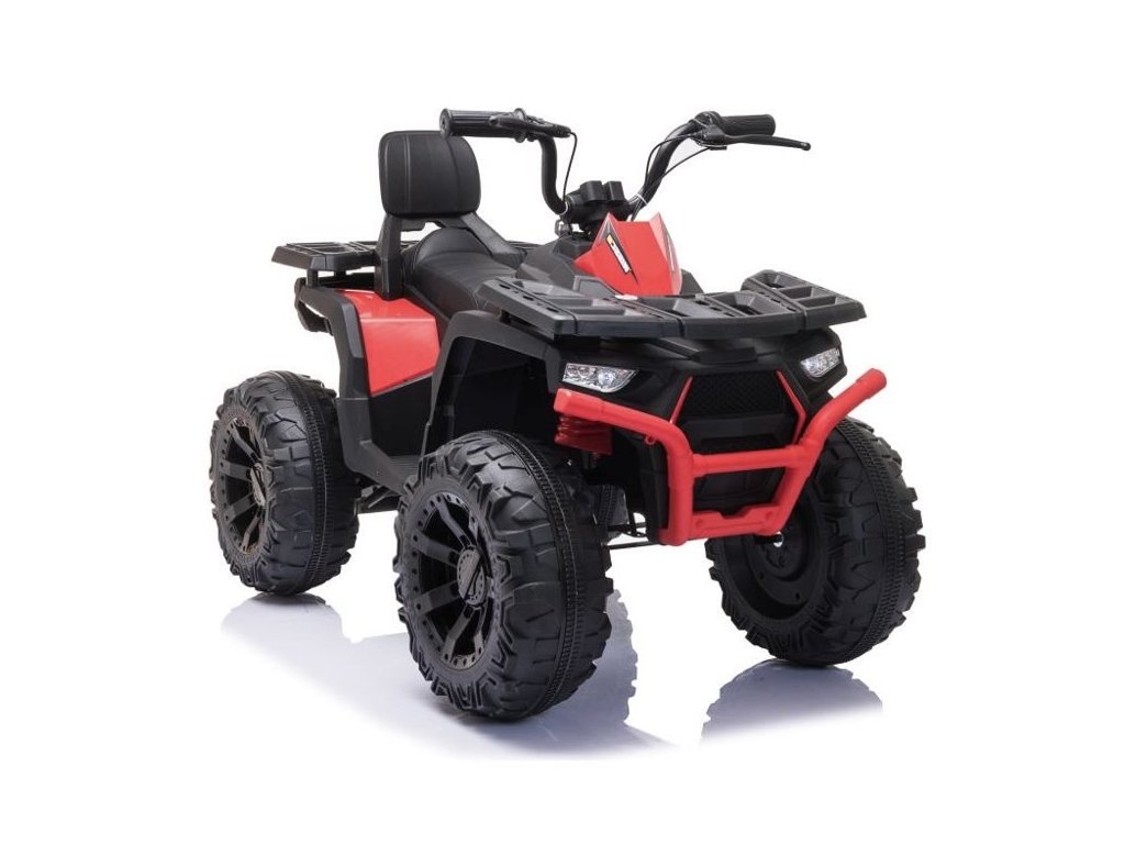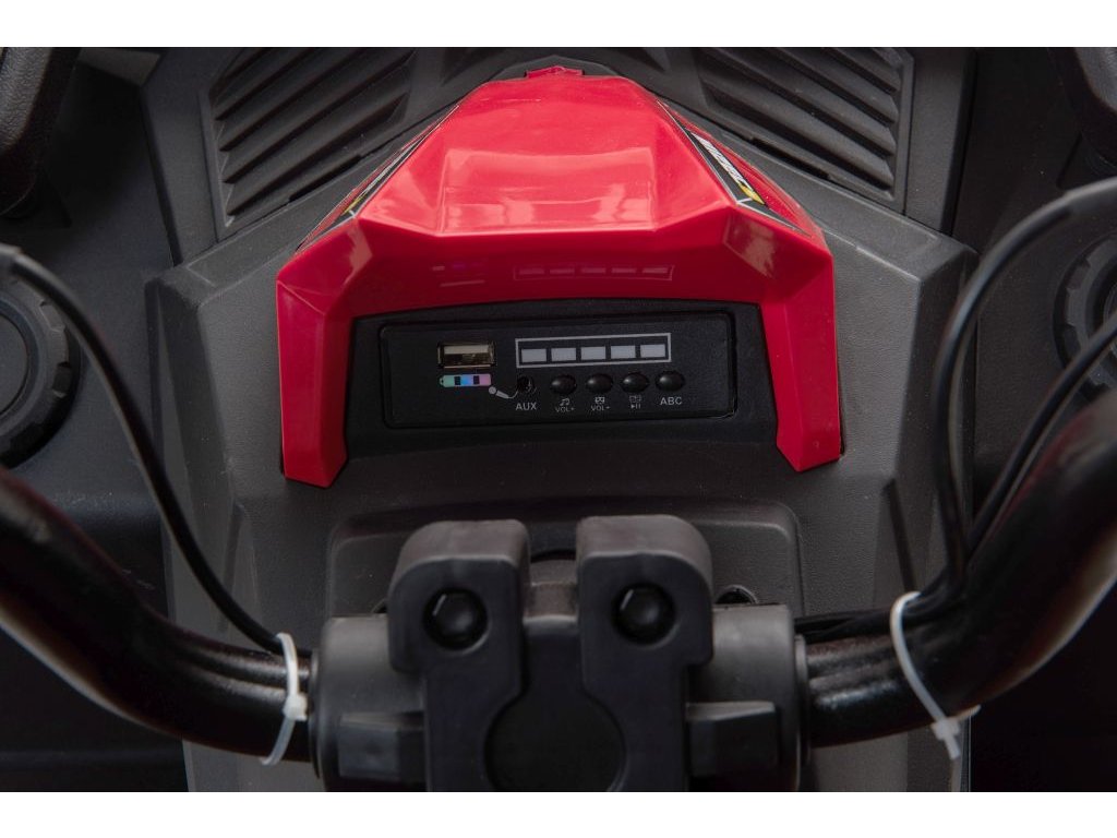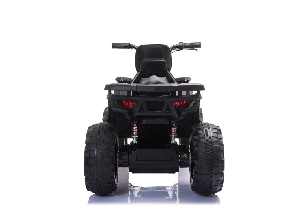 Čtyřkolka má sedadlo z ekologické kůže a pěnová EVA kola, což zpříjemní dítěti jízdu. Velkovu výhodou čtyřkolky jsou přední a zadní světla. O bezpečnost se postará automatická brzda, která se aktivuje při uvolnění plynového pedálu.
