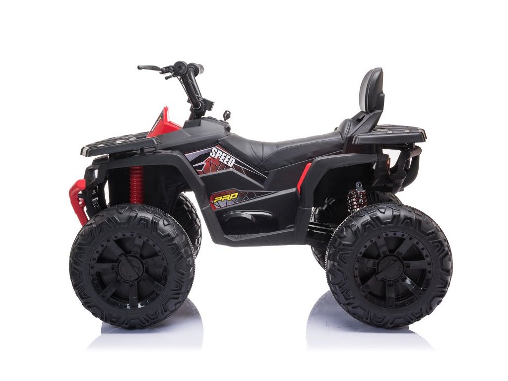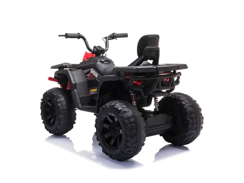 Dětská elektrická čtyřkolka SpeedPro je vybavena dvěma motory o výkonu 200W a dvěma bateriemi s kapacitou 12V 4,5Ah. Čtyřko má automatickou převodovku a tlačítko, který umožní přepnou rychlost čtyřkolky - vyšší a nižší rychlost. Rychlost čtyřkolky je v rozmezí 3-8 km/h.
