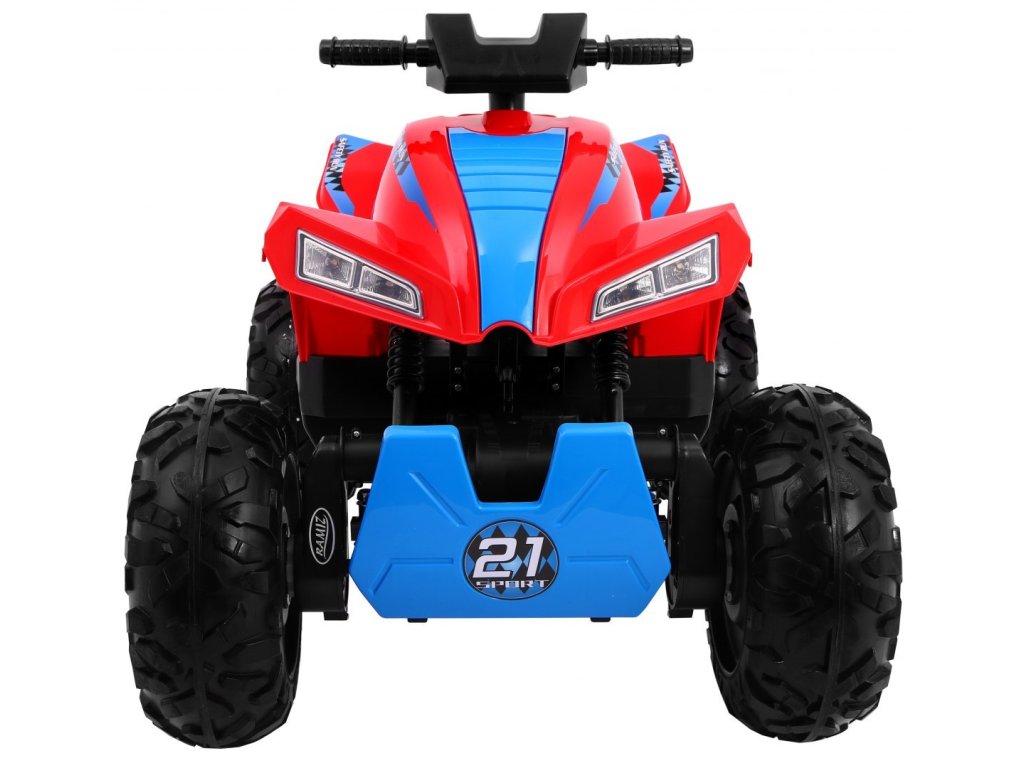 Čtyřkolka jezdí dopředu i dozadu a má možnost zrychlení. Kola jsou pěnová EVA, jsou tichá a přizpůsobí se různým typům terénu. Má čtyři výkonné elektrické motory, které zvládnou jízdu do mírného kopce nebo na nezpevněném povrchu. Sedadlo je velmi pohodlné, ergonomicky tvarované, a tak dítě bude rádo usedat znovu za volant čtyřkolky.