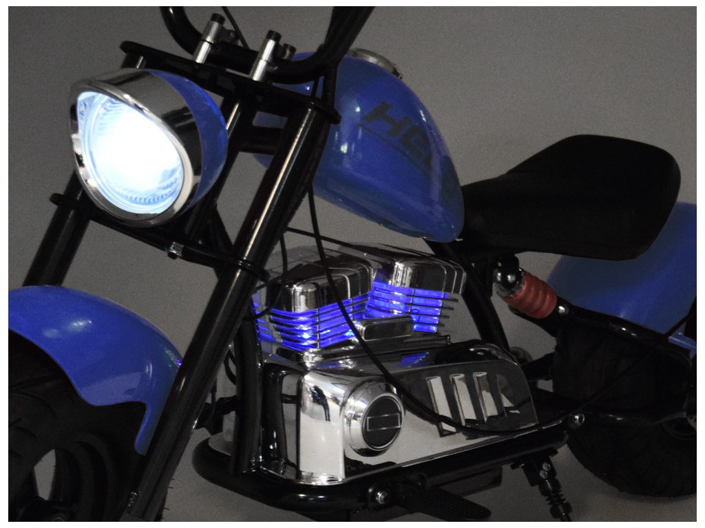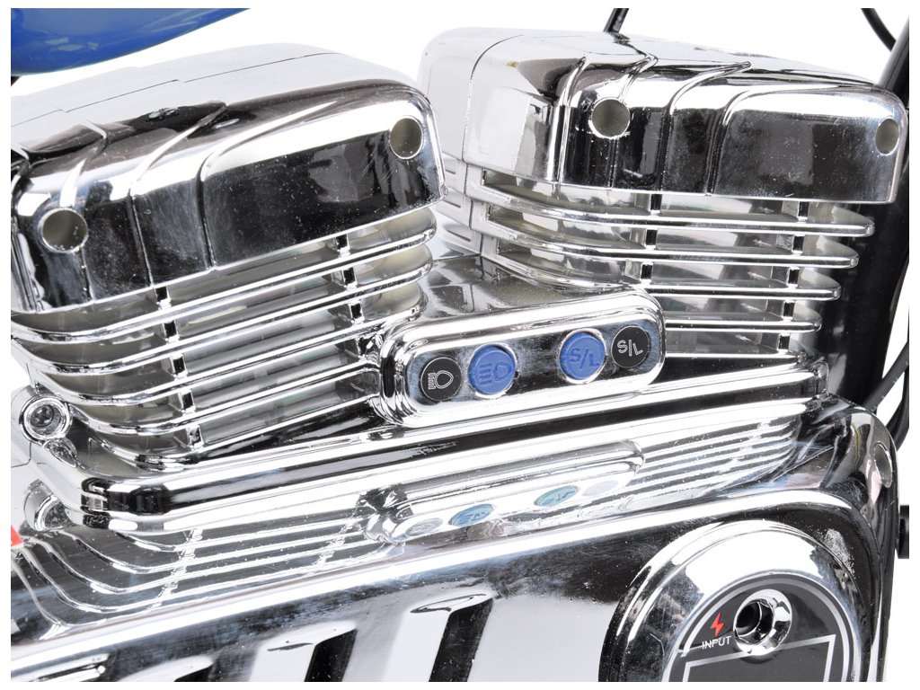 Motorka se startuje pomocí tlačítka na rukojeti řídítek. Po nastartování zazní realistický zvuk motoru. K dispozici jsou také tlačítka pro spuštění hudby, regulaci hlasitosti a změnu přehrávaných skladeb. Na řídítkách se nachází USB vstup, díky kterému lze přehrávat oblíbenou hudbu. Při přehrávání hudby válce na motoru blikají barevným LED světlem v rytmu hudby.