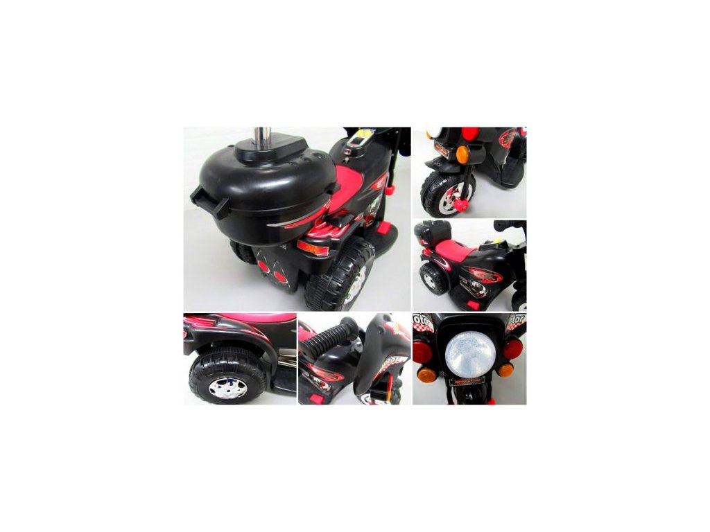 Mezi vybavení dětské elektrické motorky patří přední světlo a hudební panel s předem nahranými melodiemi. Motorka se ovládá velice jednoduše - stačí zmáčknout plynový pedál a vozidlo se pozvolně rozjede.