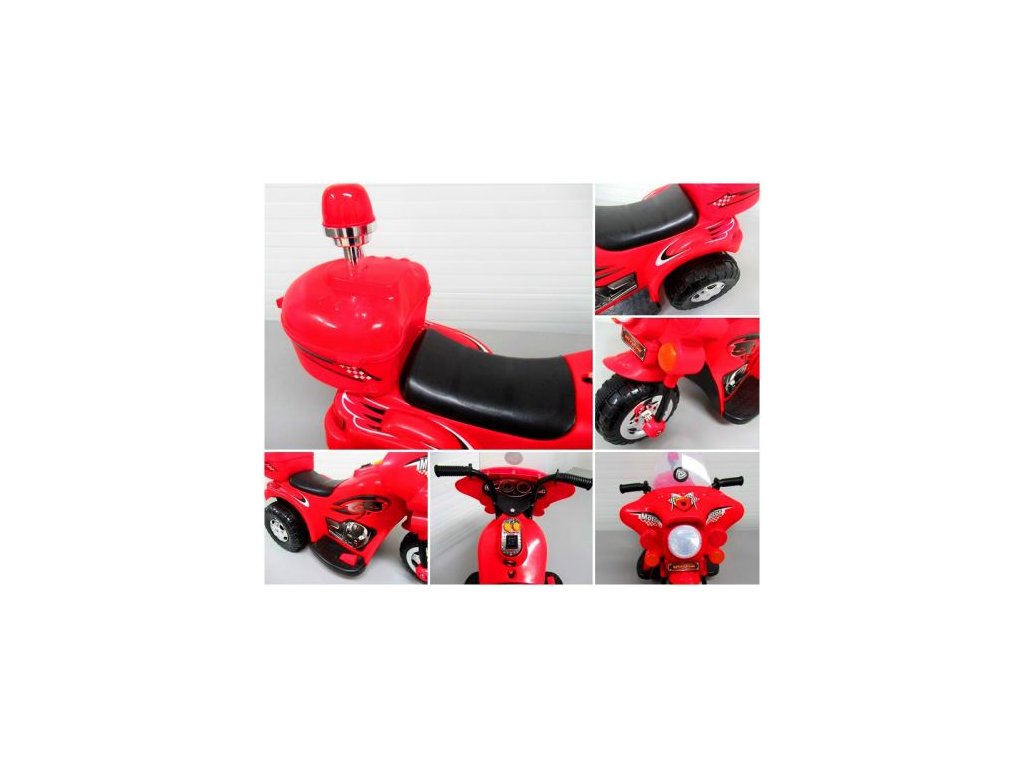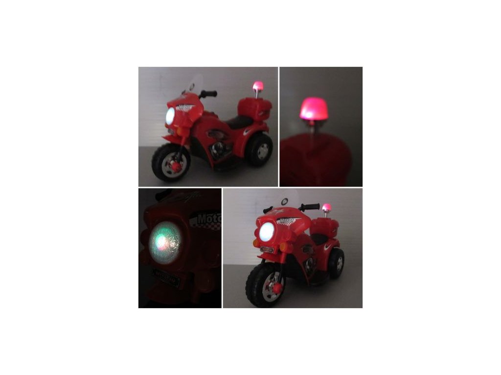 Mezi vybavení dětské elektrické motorky patří přední světlo a hudební panel s předem nahranými melodiemi. Motorka se ovládá velice jednoduše - stačí zmáčknout plynový pedál a vozidlo se pozvolně rozjede.
