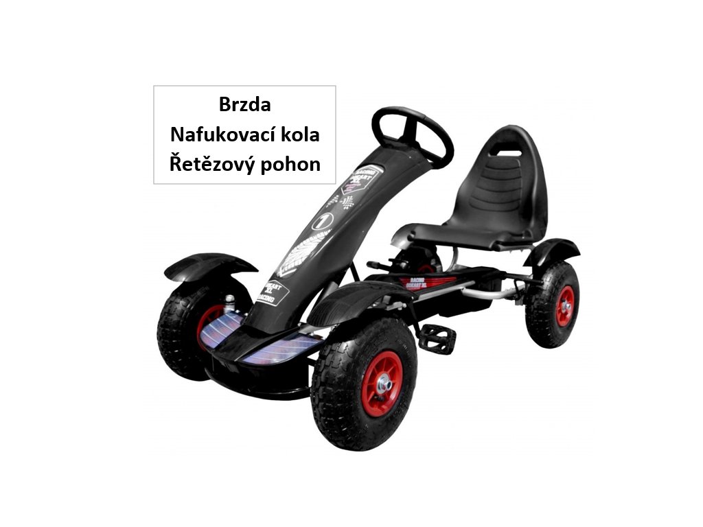 Bezpečná a pohodlná dětská motokára na, které Vaše dítě bude v průběhu jízdy praktikovat svůj pocit rovnováhy a celkovou motorickou koordinaci. Speciálně navržený rám a plošina činí toto vozidlo vhodné pro děti od 3 let. Díky jedinečnému designu a nejkvalitnějším materiálům přizpůsobeným věku jezdců si můžete být jisti bezpečností vašich dětí. Motokára má především nafukovací gumová kola, díky nimž zažijete komfortní jízdu. Motokára se řídí pomocí protiskluzových šlapek jako na kole ( pohon - řetěz ). Motokára má ruční brzdu na 2 kola. Výhoda také nastavitelnosti sedadlo s 3-úrovňovými polohy. Výrobek má evropský certifikát bezpečnosti CE.