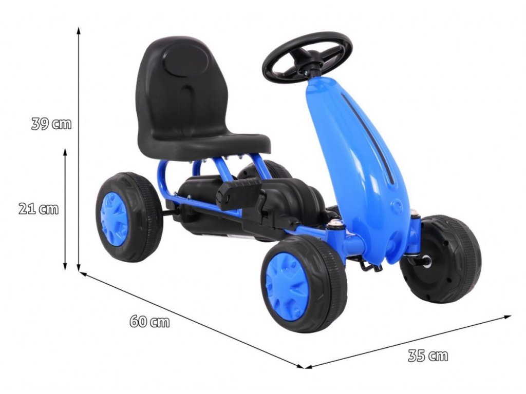Dětské šlapadlo v podobě motokáry je tím pravým společníkem pro rozvoj pohybu Vašeho dítěte. Díky kolům z tvrdého plastu dítě může jezdit i po terénech, které nejsou jen hladké a rovné. Šlapadlo má ergonomicky tvarované a pohodlné sedátko, takže dítě dokáže jezdit celý den v naprostém pohodlí. Šlapadlo dítě ovládá s pomocí sportovního volantu. Dětská motokára funguje na šlapací pohon. Je bezmotorová, tedy zcela nehlučná a nezatěžuje životní prostředí. Je to nová forma sportovní aktivity.
