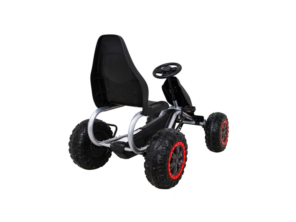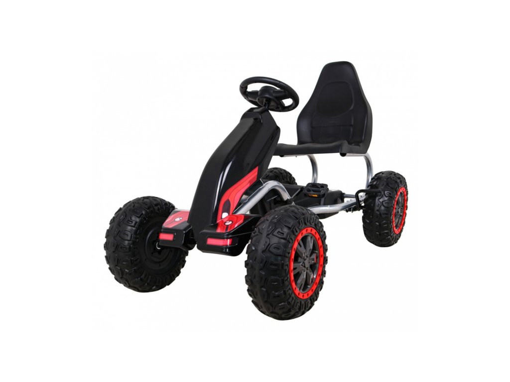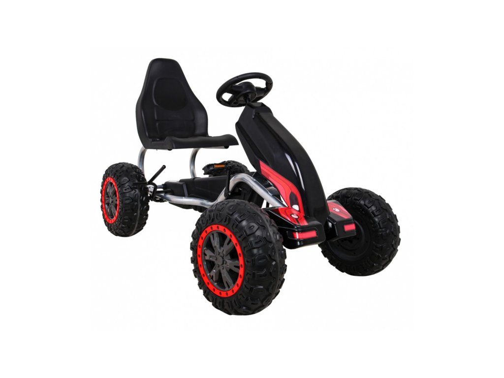 Pro bezpečí dítěte je součástí funkční ruční brzda a na zdraví dohlíží i vysoká opěrka ergonomicky tvarovaného sedadla. Šlapadlo umožňuje dítěti jízdu vpřed. Kola motokáry jsou z Eva materiálu, tím je zajištěna perfektní přilnavost k povrchu. Dětská šlapací motokára je výbornou formou pohybu pro děti.
