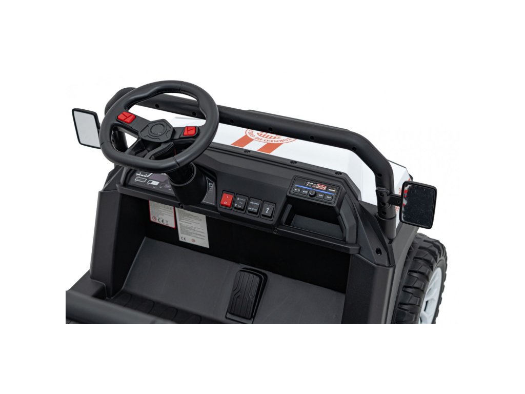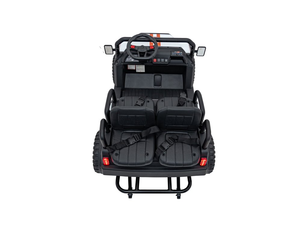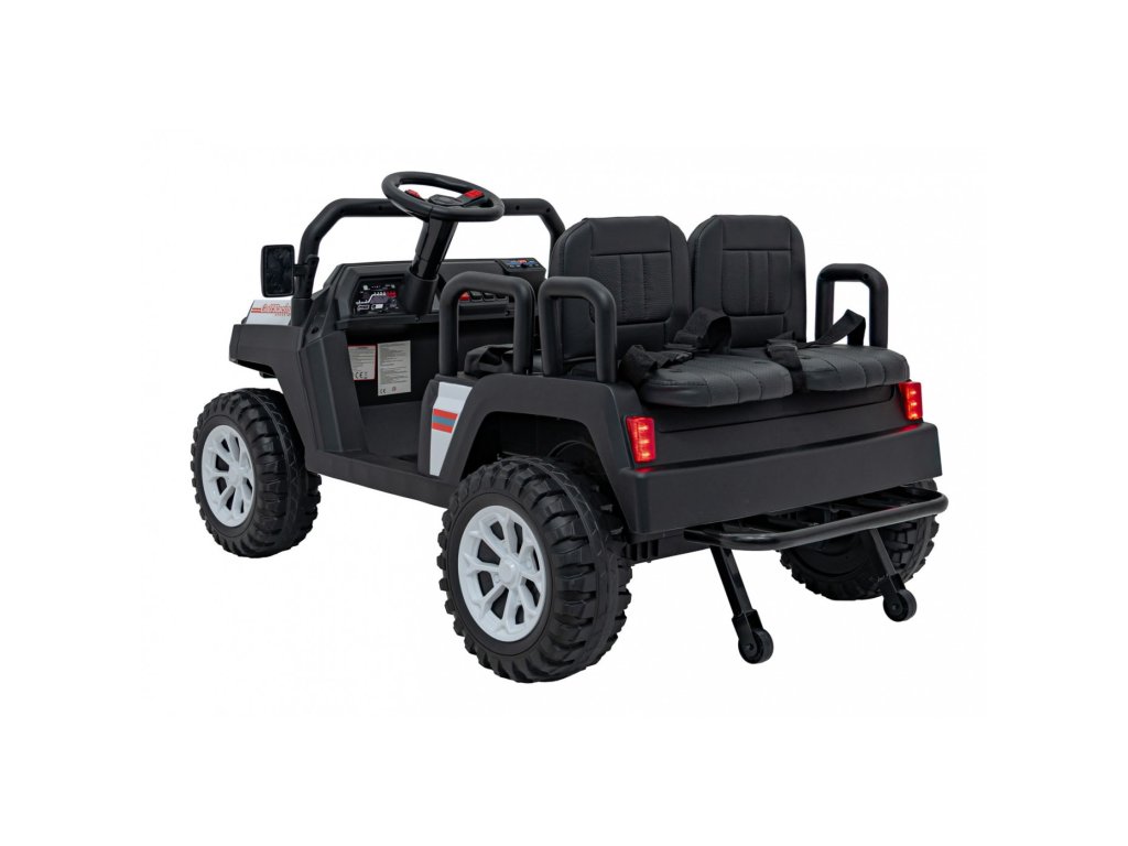 Elektrické vozidlo Buggy Champion 24V je robustní čtyřmístný model určený pro malé dobrodruhy. Díky dvěma výkonným motorům 200W (2 × 200W) a akumulátoru 24V 9Ah nabízí spolehlivý chod v různých podmínkách. Buggy je vybaveno dálkovým ovládáním 2,4 GHz, které umožňuje volbu ze tří rychlostí a obsahuje bezpečnostní tlačítko STOP.