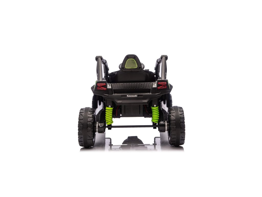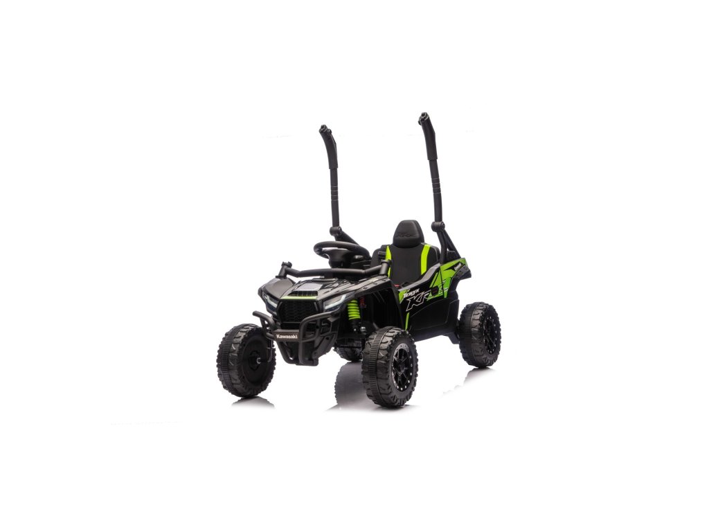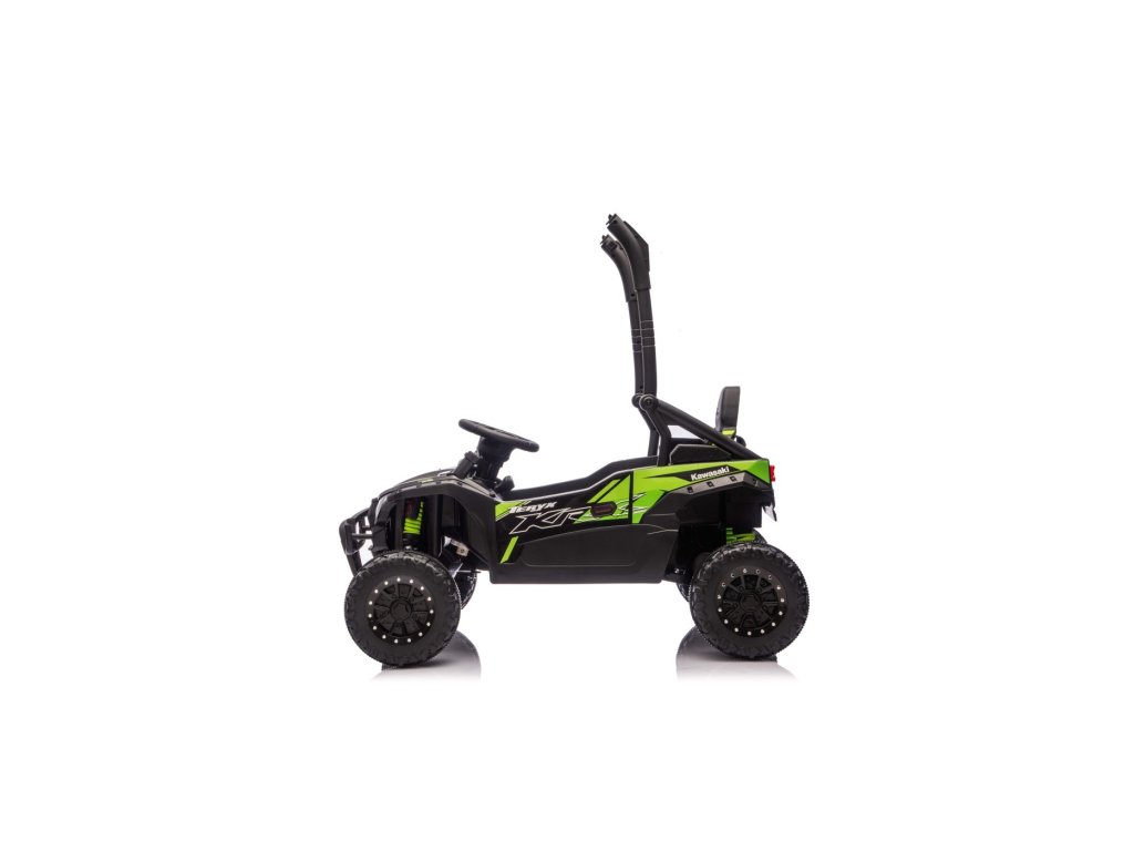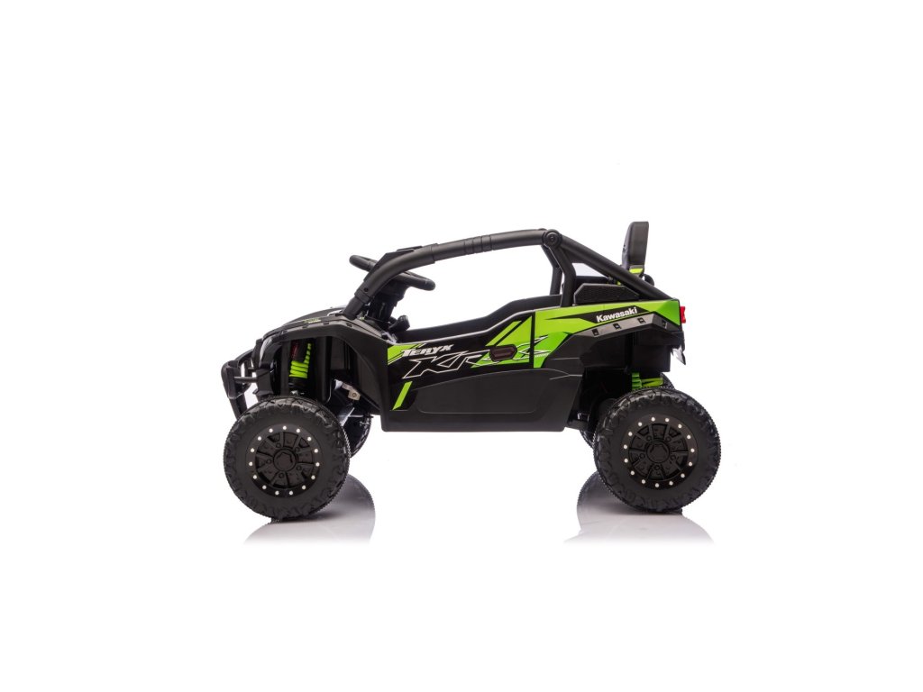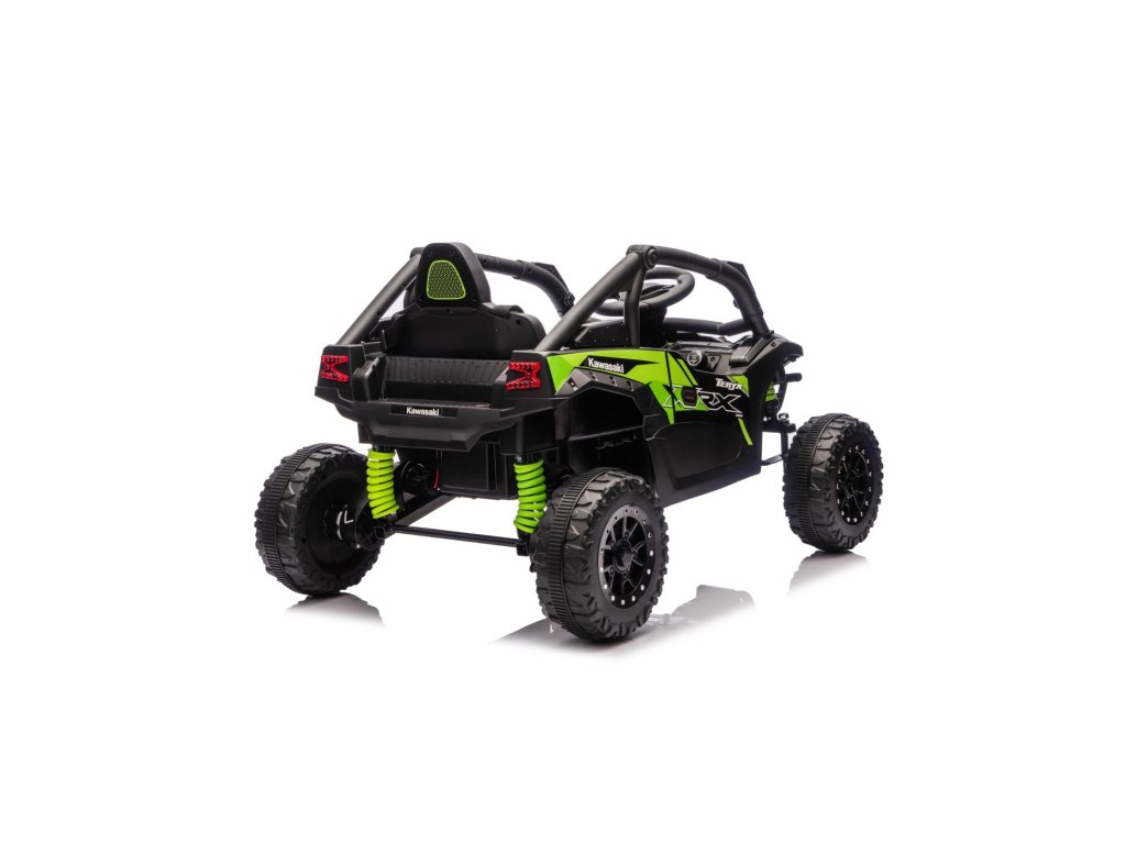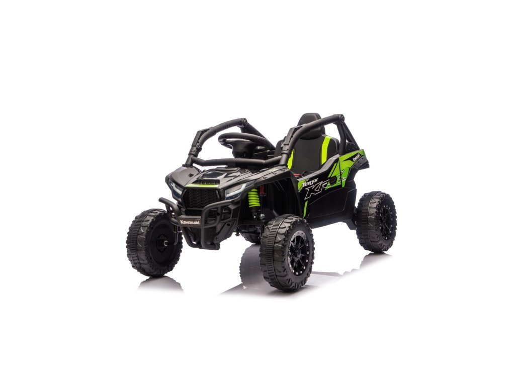 Stylové dětské vozítko Buggy Kawasaki TERYX KRX1000 je ideální volbou pro malé řidiče, kteří milují jízdu v terénu i na hladkém povrchu. Výkonný 24V systém se čtyřmi motory (2× 20W vpředu, 2× 45W vzadu) zajistí dostatek síly i pro nerovný terén. Vozítko je vybaveno měkkými EVA koly, pohodlným koženým sedadlem a bezpečnostními pásy. Díky dálkovému ovládání s funkcí STOP mají rodiče vozítko vždy pod kontrolou. Výbava zahrnuje LED světla, audio panel s Bluetooth, MP3, USB vstupem a dalšími funkcemi.