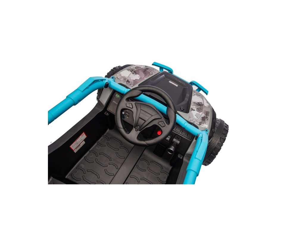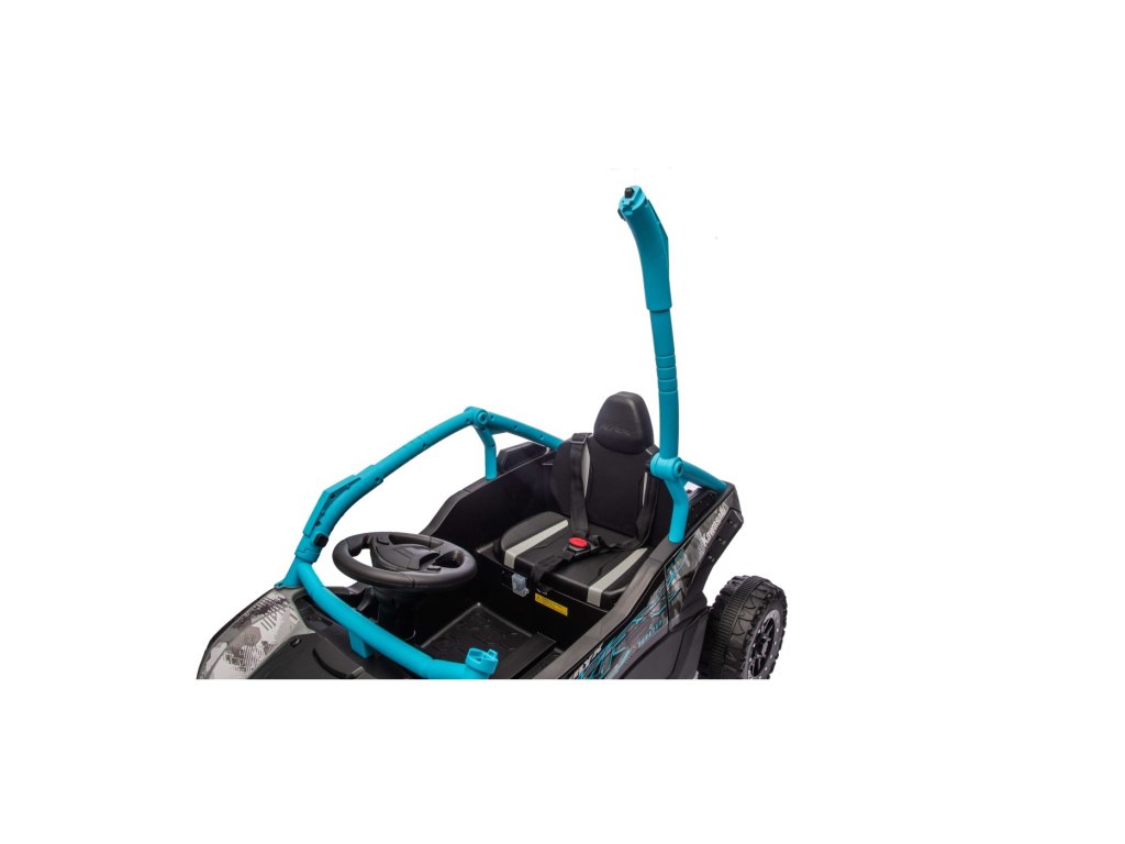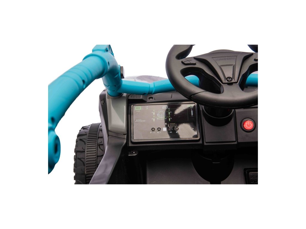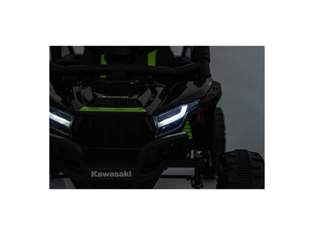 Stylové dětské vozítko Buggy Kawasaki TERYX KRX1000 je ideální volbou pro malé řidiče, kteří milují jízdu v terénu i na hladkém povrchu. Výkonný 24V systém se čtyřmi motory (2× 20W vpředu, 2× 45W vzadu) zajistí dostatek síly i pro nerovný terén. Vozítko je vybaveno měkkými EVA koly, pohodlným koženým sedadlem a bezpečnostními pásy. Díky dálkovému ovládání s funkcí STOP mají rodiče vozítko vždy pod kontrolou. Výbava zahrnuje LED světla, audio panel s Bluetooth, MP3, USB vstupem a dalšími funkcemi.