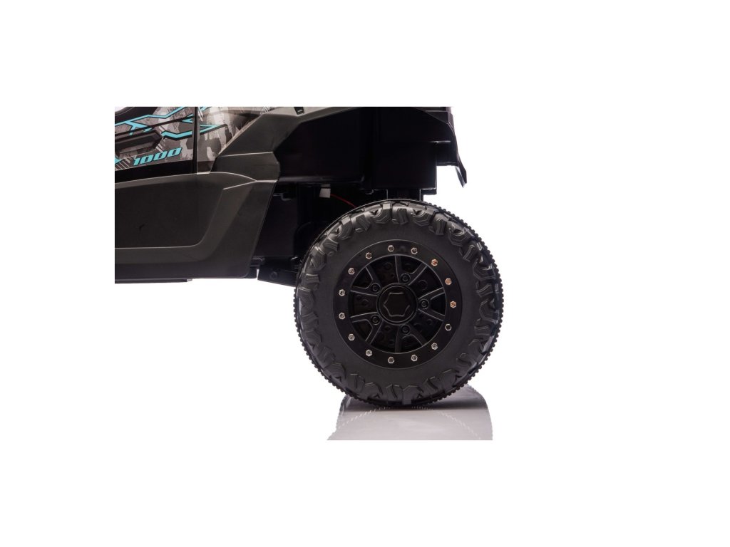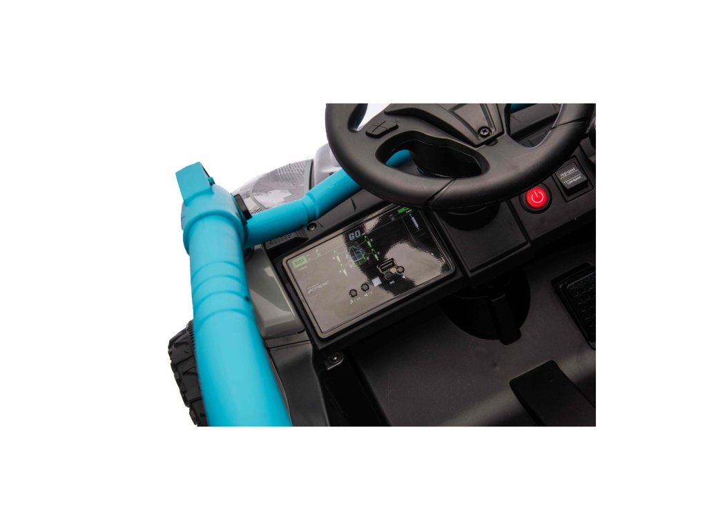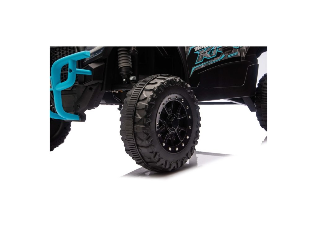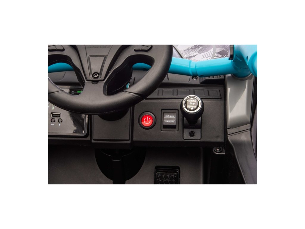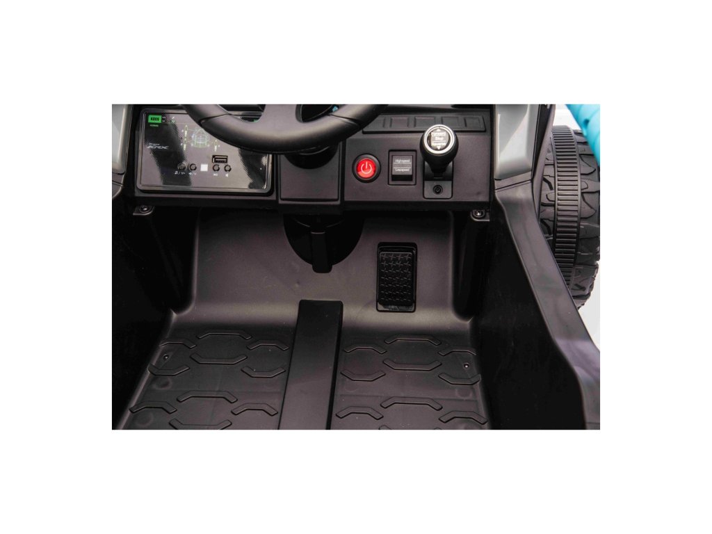 Stylové dětské vozítko Buggy Kawasaki TERYX KRX1000 je ideální volbou pro malé řidiče, kteří milují jízdu v terénu i na hladkém povrchu. Výkonný 24V systém se čtyřmi motory (2× 20W vpředu, 2× 45W vzadu) zajistí dostatek síly i pro nerovný terén. Vozítko je vybaveno měkkými EVA koly, pohodlným koženým sedadlem a bezpečnostními pásy. Díky dálkovému ovládání s funkcí STOP mají rodiče vozítko vždy pod kontrolou. Výbava zahrnuje LED světla, audio panel s Bluetooth, MP3, USB vstupem a dalšími funkcemi.