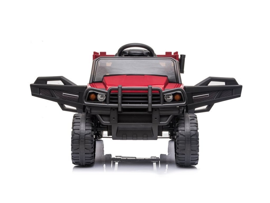 Elektrické autíčko je vybaveno sedačkou z měkké ekologické kůže, předními LED světly a hudebním panelem se vstupem MP3, USB a FM rádiem.