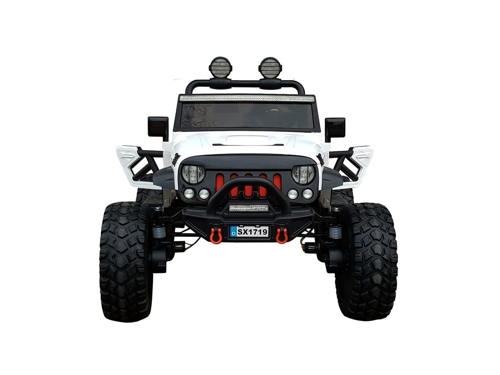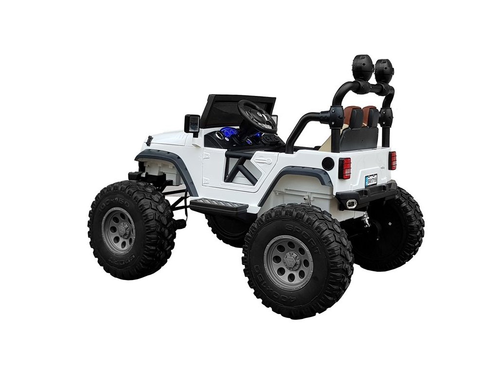 Dětské elektrické autíčko jeep SX je parádní terénní vozidlo pro dvě děti. Hmotnost vozidla je 60 kg. Děti se posadí do pohodlně tvarované sedačky z ekologické kůže, která je vybavena bezpečnostními pásy.