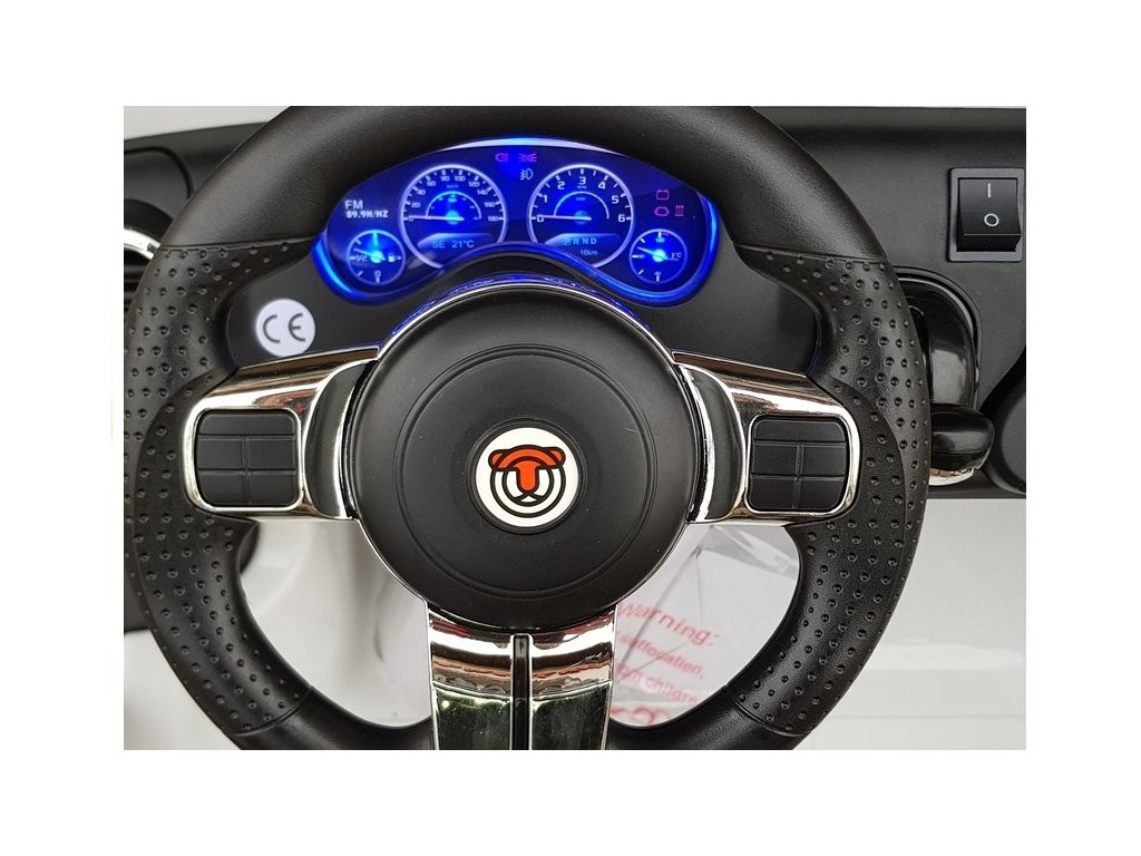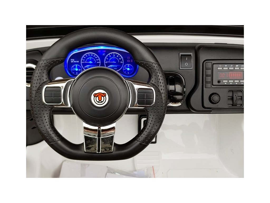 Autíčko má měkká pěnová Eva kola, která společně se čtyřmi výkonnými motory zvládnou různé typy terénu i kopce. Mezi další vybavení patří hudební panel se vstupem MP3, USB a Mikro SD, jež se vyjímá vedle osvětlené přístrojové desky.