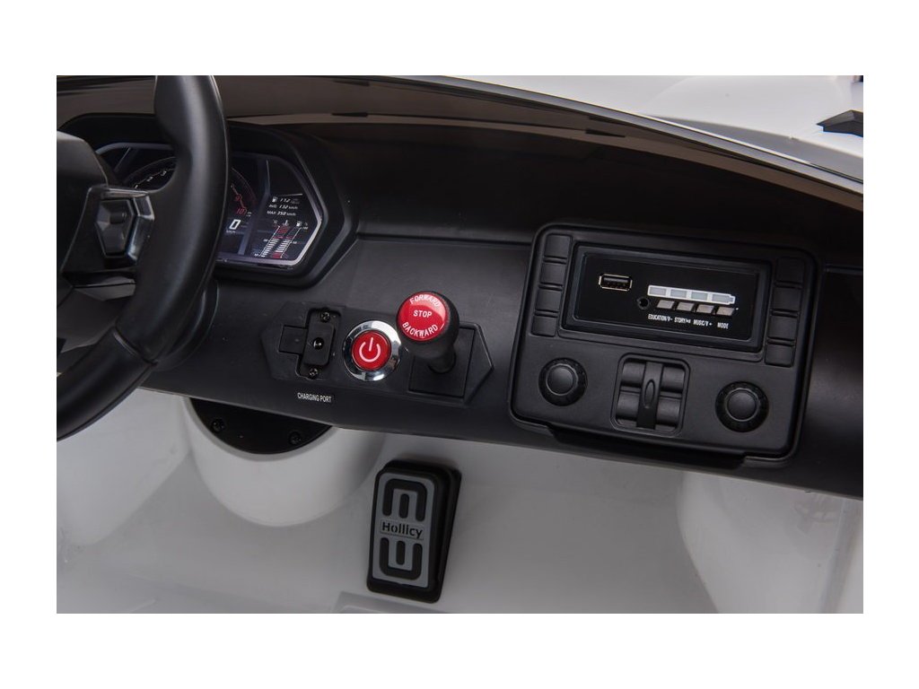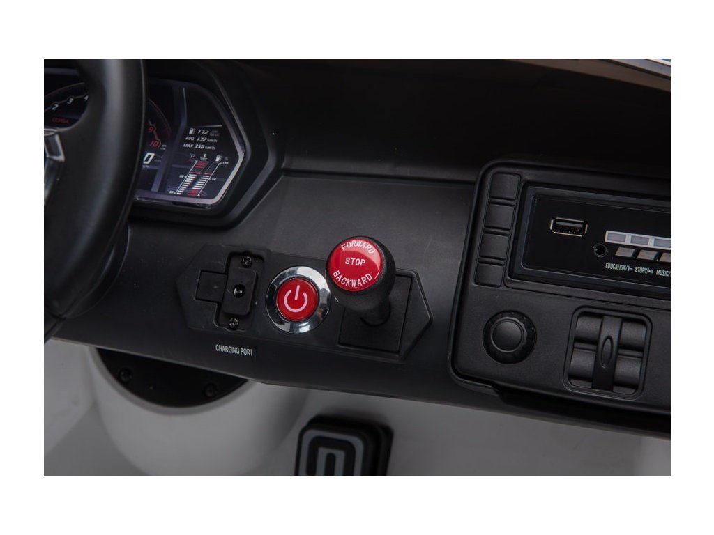 Jedna věc, kterou nelze ignorovat, jsou výkonové a pohonné komponenty vozu. Technické údaje elektrického autíčka Lamborghini hovoří samy za sebe - vůz je vybaven motorem 2 x 45W, baterií 12V 7Ah a třístupňovou převodovkou. Používání vozu je velmi jednoduché - stačí zapnout spínač, který bude doprovázen zvuky motoru, potom stiskněte plynový pedál a opatrně jděte. Můžete také použít druhou možnost - sada obsahuje spolehlivé dálkové ovládání 2.4G.