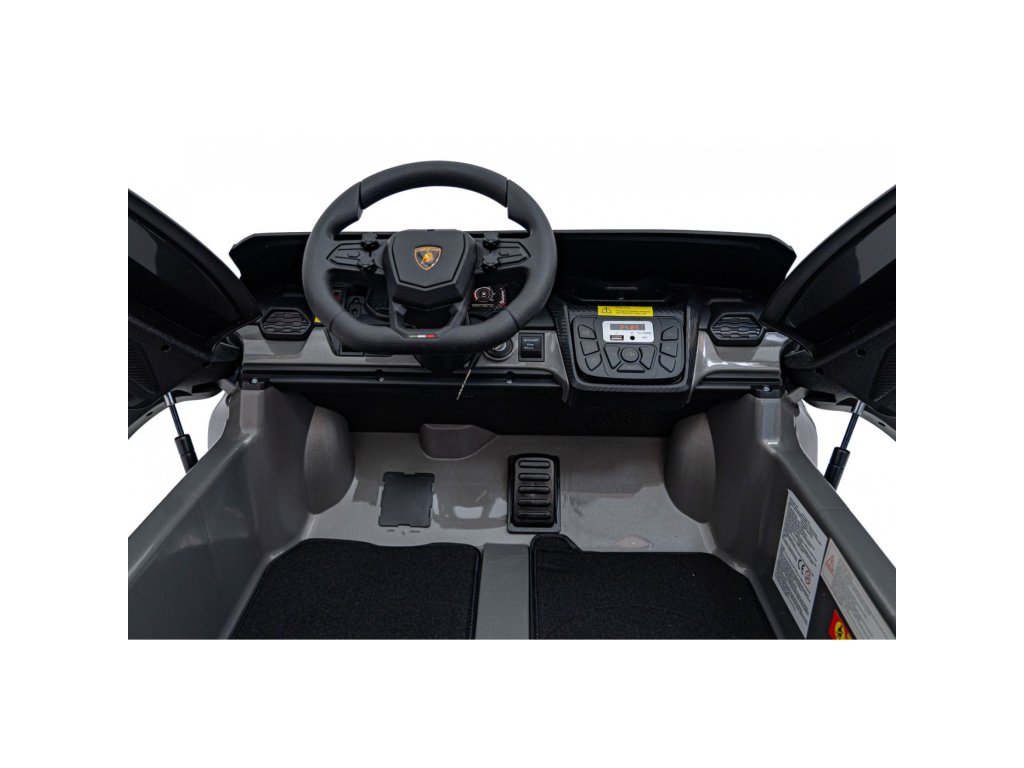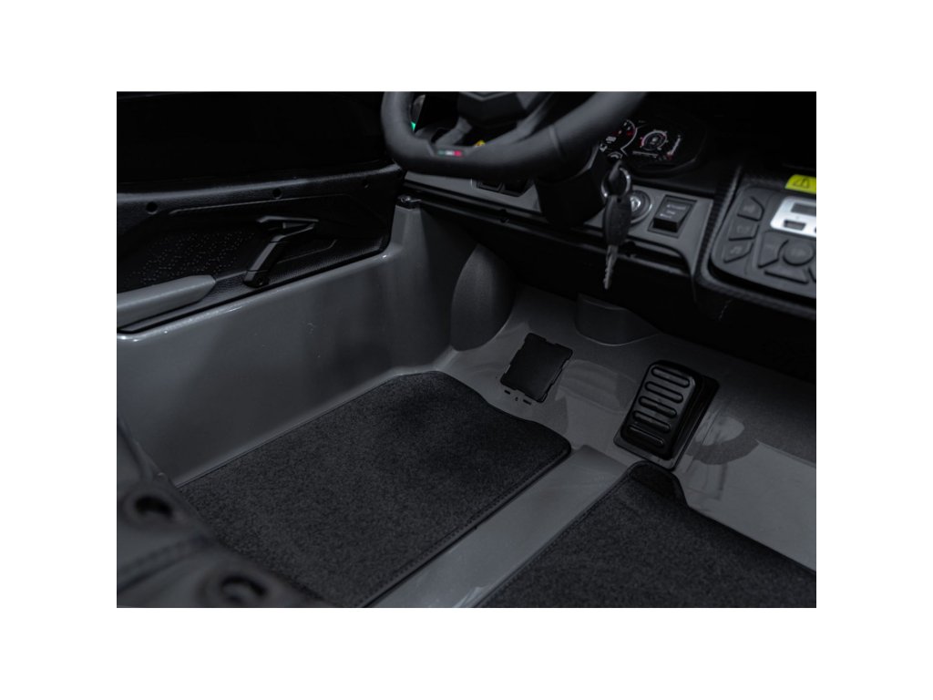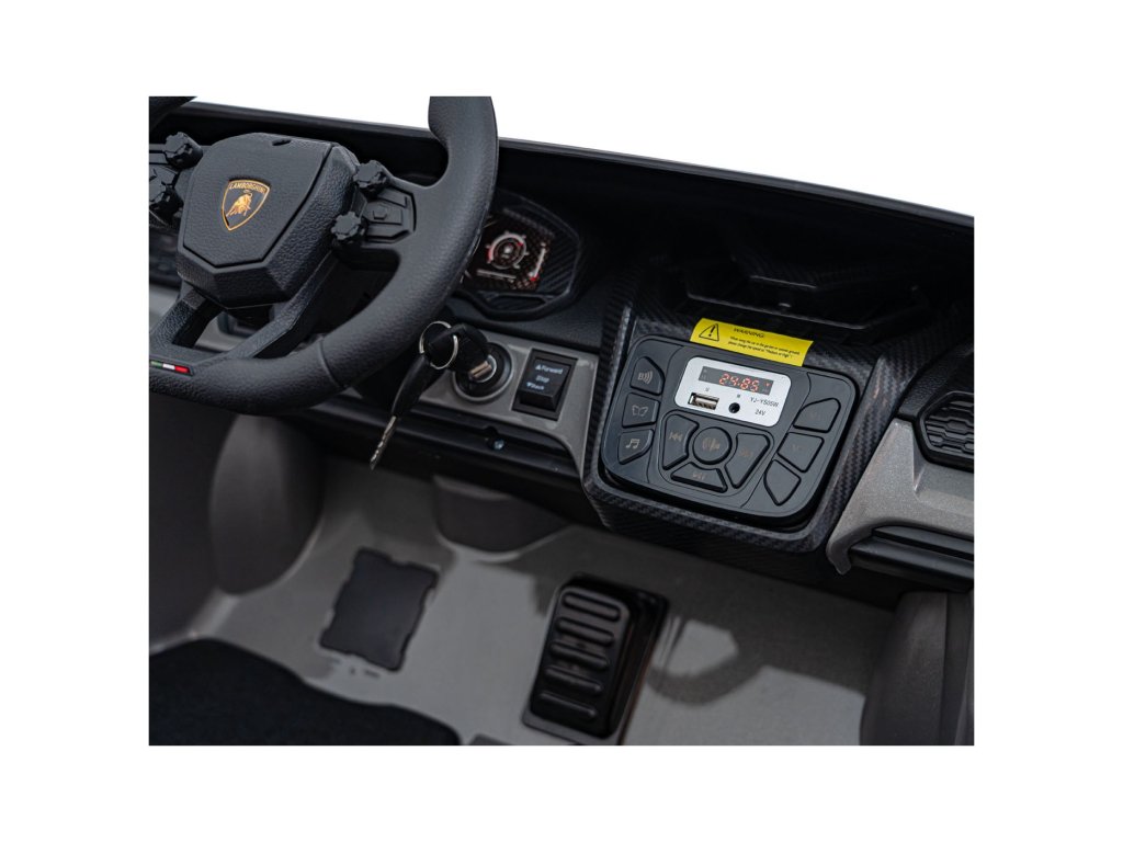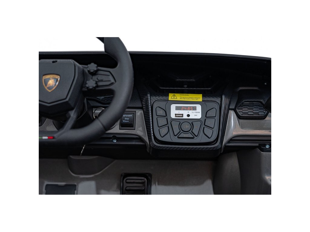Součástí výbavy je bohatý multimediální panel s rádiem FM, MP3, USB, AUX a Bluetooth. Rodiče mají plnou kontrolu díky dálkovému ovladači 2,4 GHz s třemi rychlostmi a bezpečnostním tlačítkem STOP.