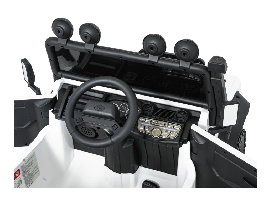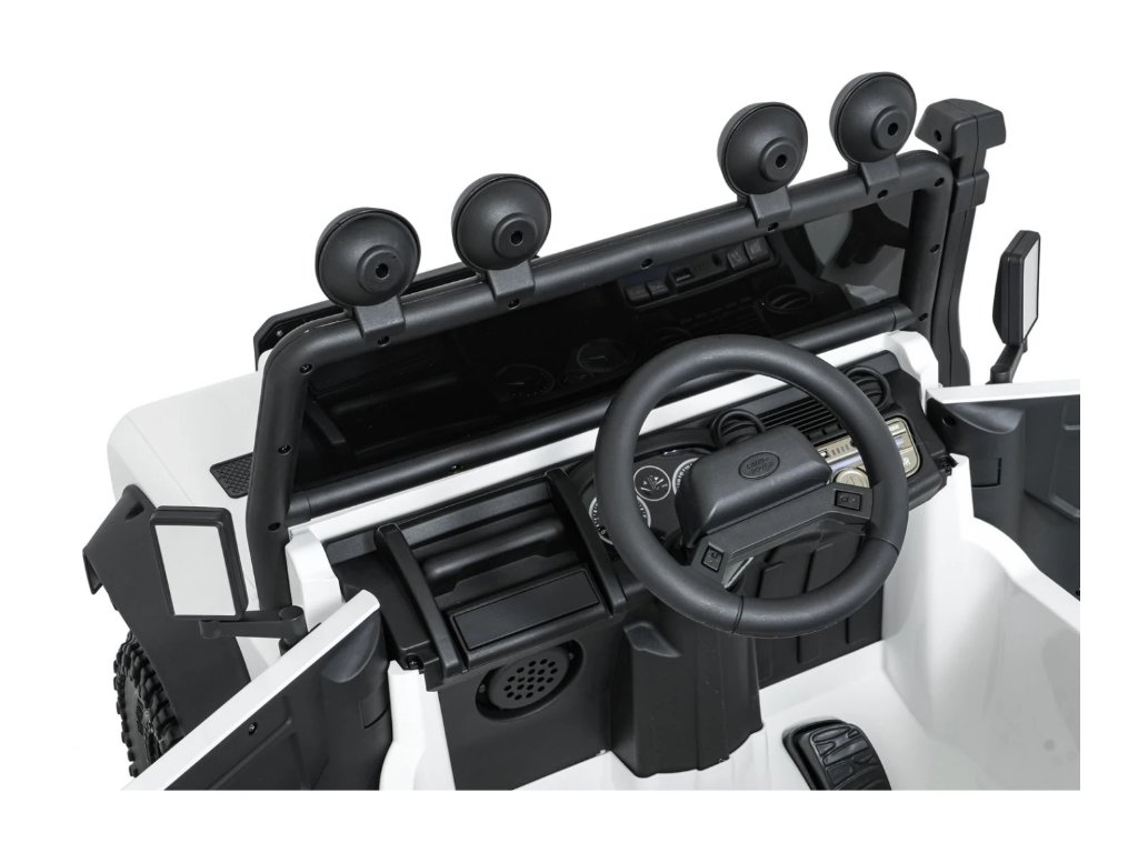 Stylové dětské autíčko Land Rover s robustní konstrukcí a důrazem na bezpečnost i komfort zaujme každého malého řidiče. Dva motory s výkonem 100 W zajišťují dostatečný výkon pro jízdu vpřed i vzad. Měkká pěnová kola EVA a přední i zadní tlumiče se postarají o pohodlnou jízdu po různých površích.