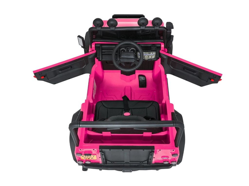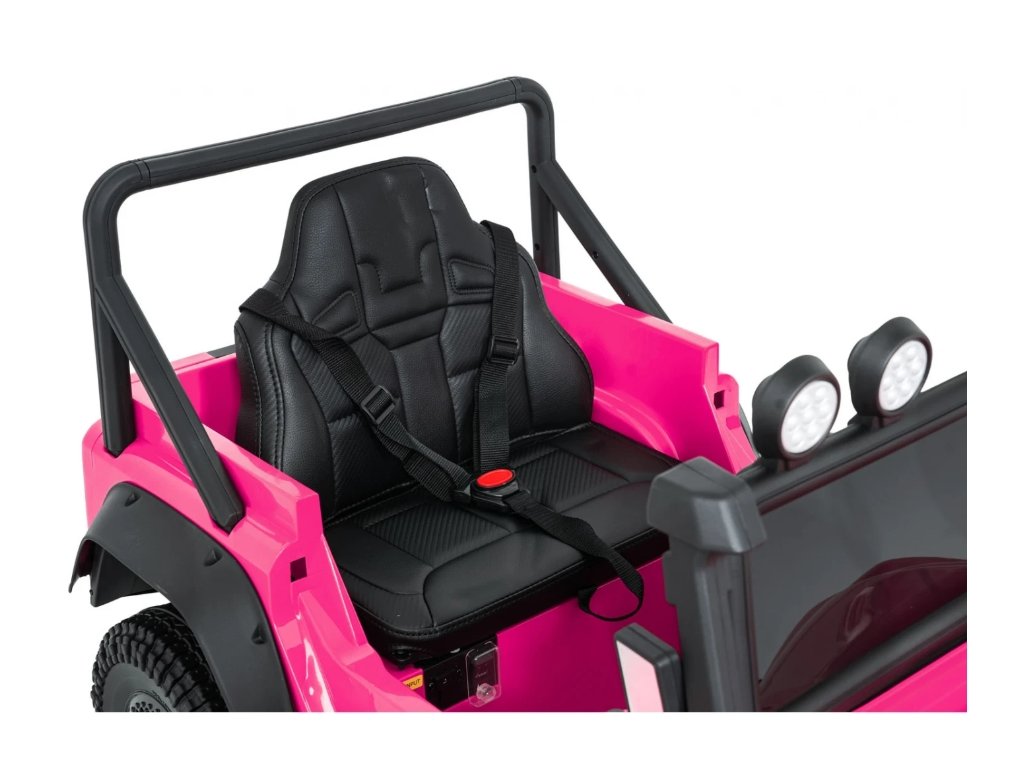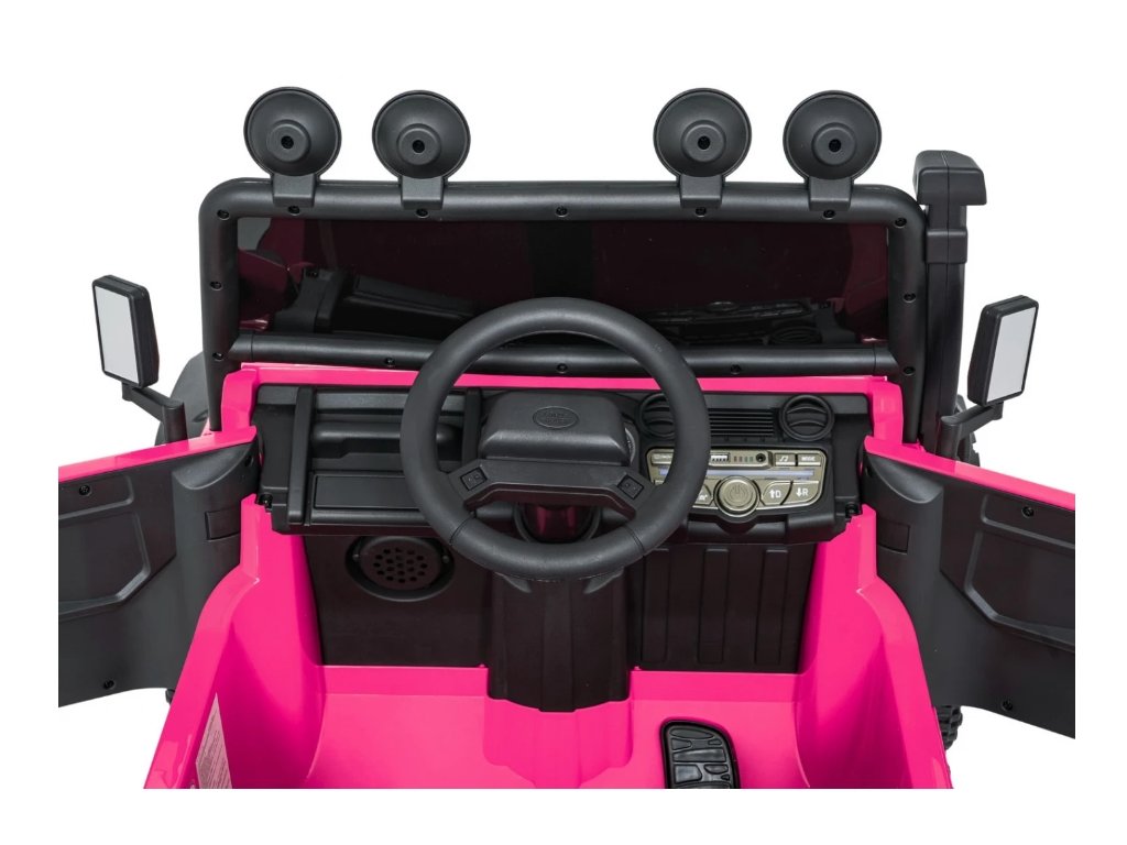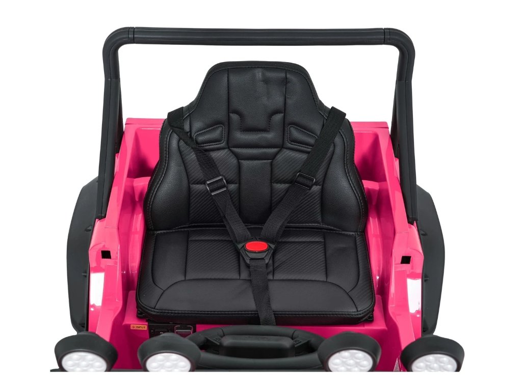 Jednomístné sedadlo z ekokůže s tříbodovým bezpečnostním pásem zajišťuje bezpečí, zatímco LED osvětlení, otevírací dveře a zvukové efekty přispívají k realistickému zážitku z jízdy. Hudební panel s MP3, Bluetooth, AUX a USB vstupem umožní přehrávat oblíbenou hudbu.