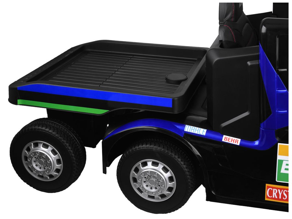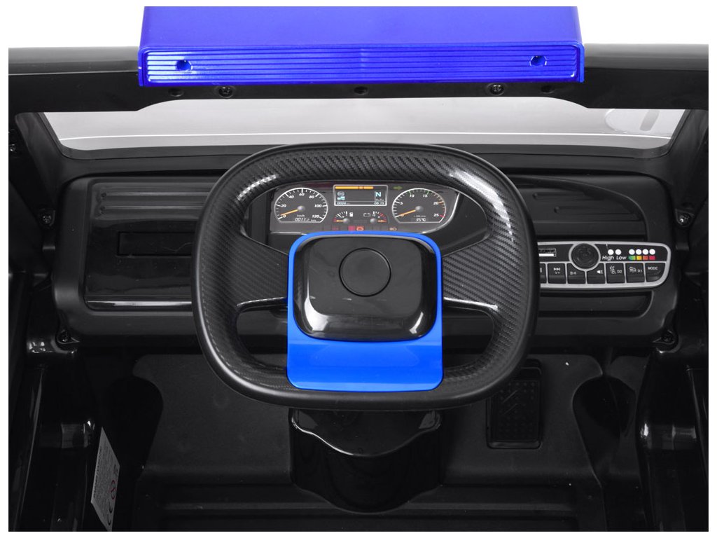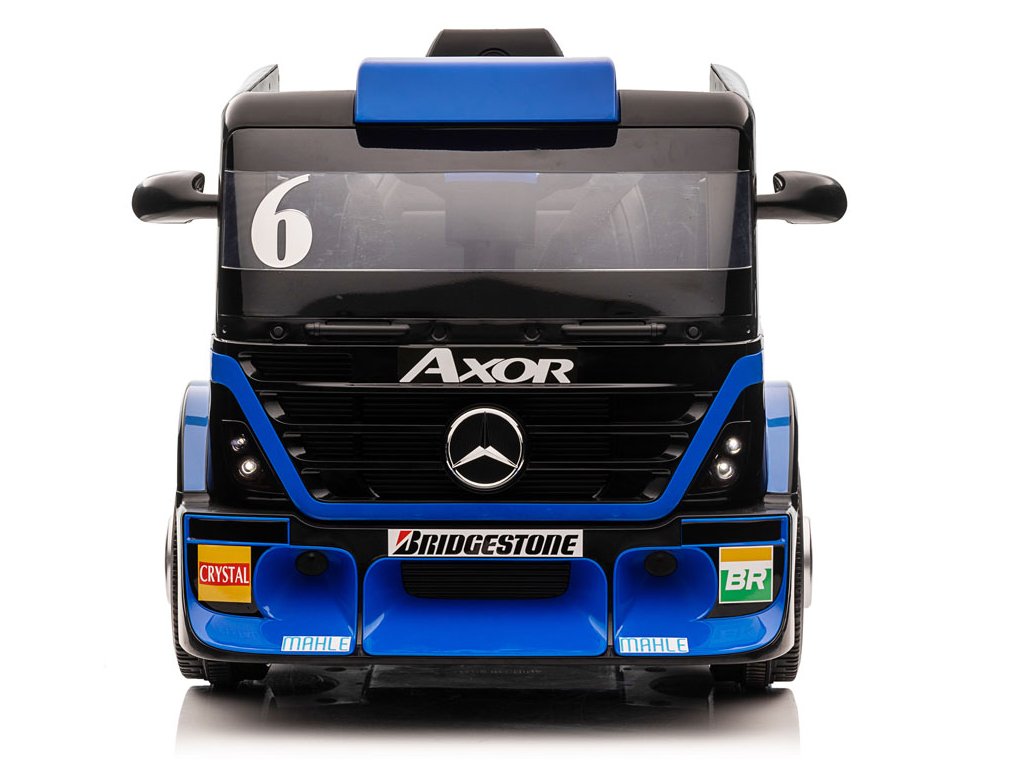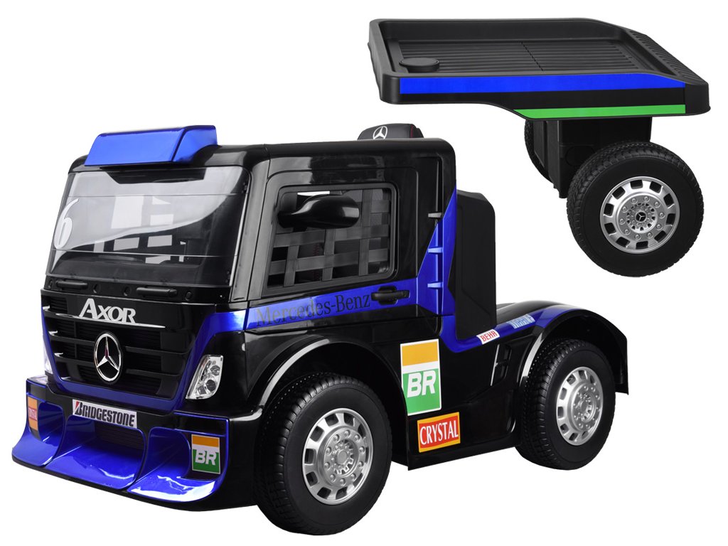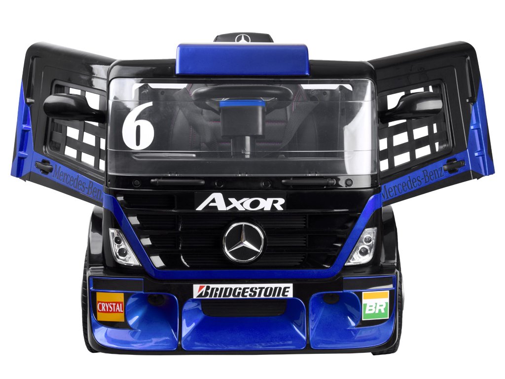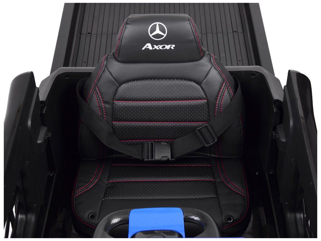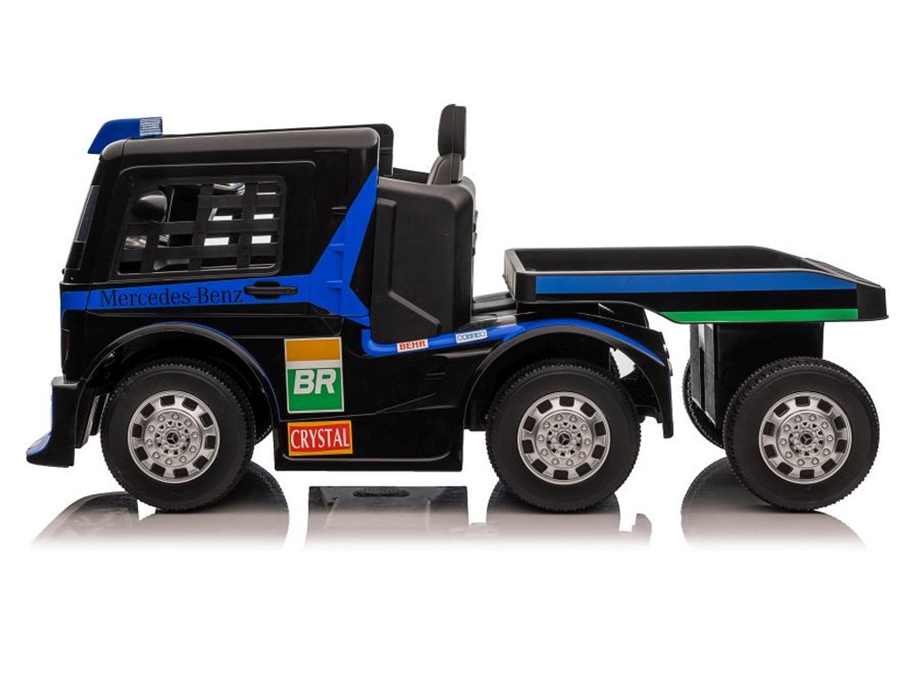 Mercedes Benz je skutečnou kombinací spolehlivosti, nejvyšší kvality a designu. Toto vozidlo bude užitečné jak při každodenní jízdě venku, tak při víkendových výletech mimo město. Dva 200W motory v kombinaci s 24V7Ah baterií umožňují jízdu rychlostí 3 až 8 km/h, což jistě zaujme malého řidiče. Nákladní auto má otevírací dveře s uzamykacím mechanismem, vozidlo se startuje stisknutím tlačítka, přičemž dítě uslyší zvuk vrčení motoru. Přední část vozidla je osvětlena LED světly. Na volantu je tlačítko s klaksonem a na palubní desce je panel zodpovědný za hudbu, melodie, zvýšení a snížení hlasitosti, stav baterie, pomalou jízdu (tlačítko s želvou) rychlou jízdu (tlačítko se zajícem) a vypínač světel.