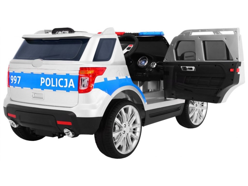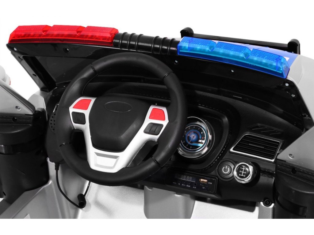 Dětské elektrické policejní autíčko s nádherným vzhledem originálního modelu USA policie. Dva silné elektrické motory (2x 45W/12V) se starají o náhon obou zadních kol. Vozítko je možné řídit dvěma způsoby – manuálně a dálkovým ovládáním. Při manuálním řízení se auto stlačením nožního pedálu rozjede, uvolněním pedálu automaticky zabrzdí. 2.4G Bluetooth dálkové ovládání má před jízdou na pedál přednost. Autíčko tak můžete na dálku zastavit i při stlačeném pedálu, díky čemuž máte nad dětmi plnou kontrolu.
