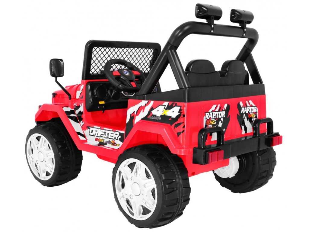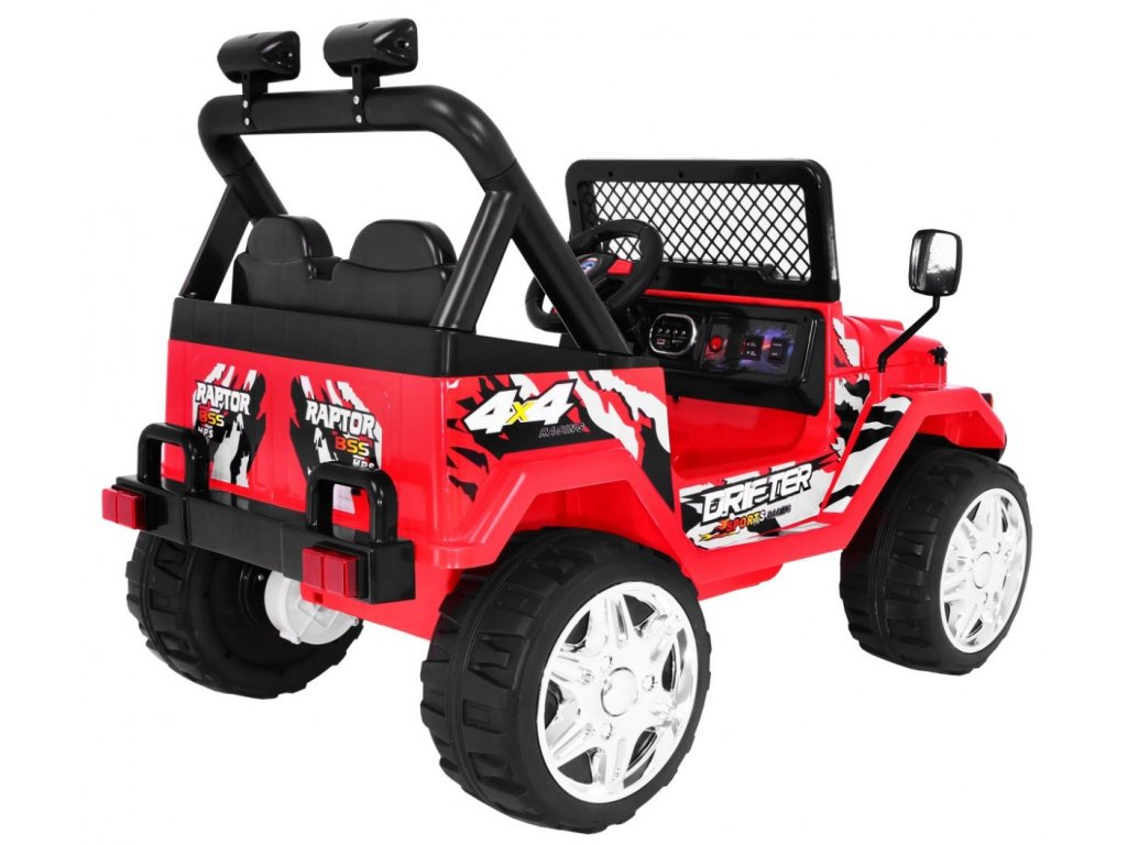 Dětské elektrické autíčko Raptor Drifter s inovativním dálkovým ovládáním určeným pro rodiče. Autíčko má skvěle pohodlnou sedačku a pro bezpečnost dítěte je na sedačce umístěn bezpečnostní pas. Autíčko je také vybaveno palubní deskou, volantem a svítícími předními světly. Vozítko lze ovládat dvěma způsoby, bud' pomocí dálkového ovladače určeného pro rodiče, kdy rodič sám volí směr a rychlost jízdy nebo dítě řídí autíčko zcela samostatně. Kola jsou měkká pěnová a umožňují tak plynulou a příjemnou jízdu bez hrkání.