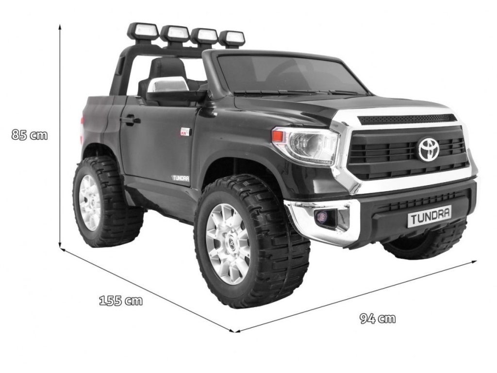 Dětské elektrické autíčko Toyota Tundra přijíždí na pěnových Eva kolech, která se přizpůsobí různým typům terénu a skvěle zvládnou kopce i překážky. Dítě se posadí do pohodlně tvarované sedačky z měkké ekologické kůže. Nosnost autíčka je až 50 kg.