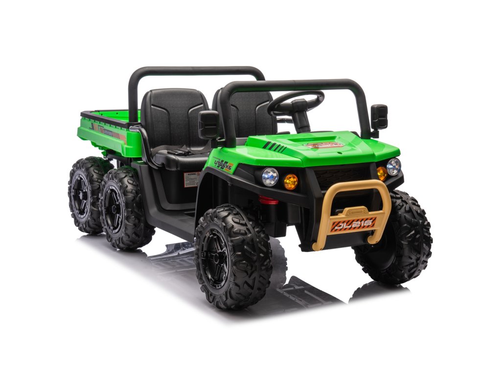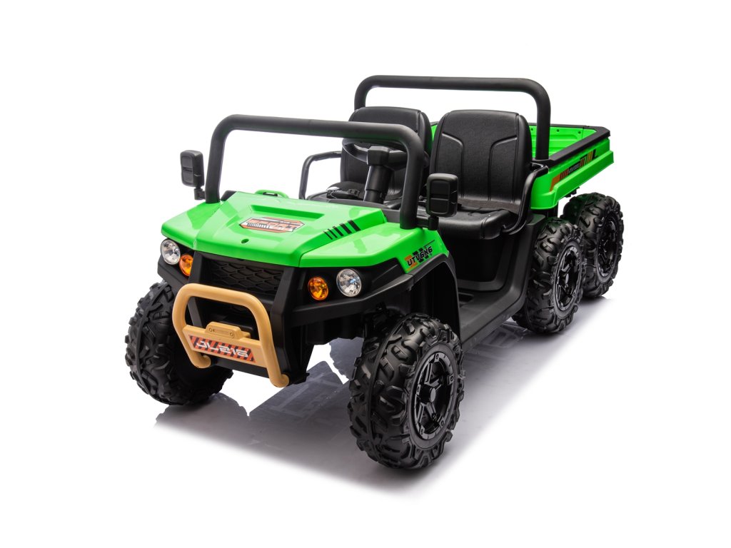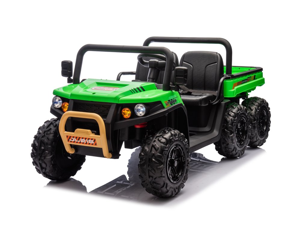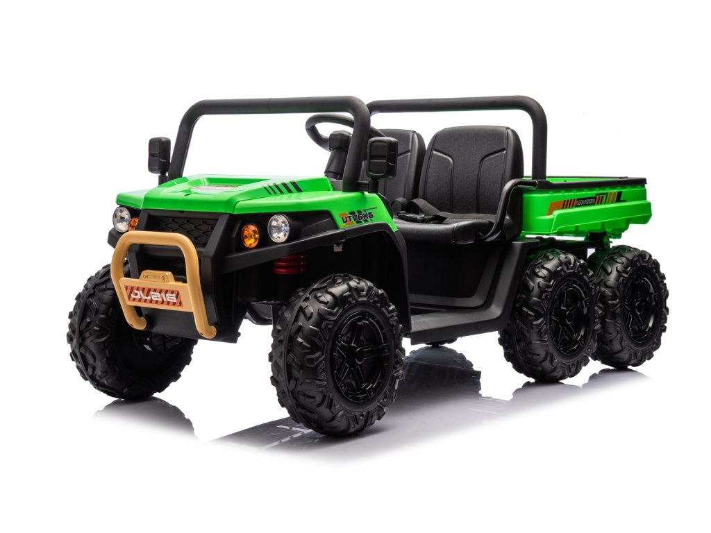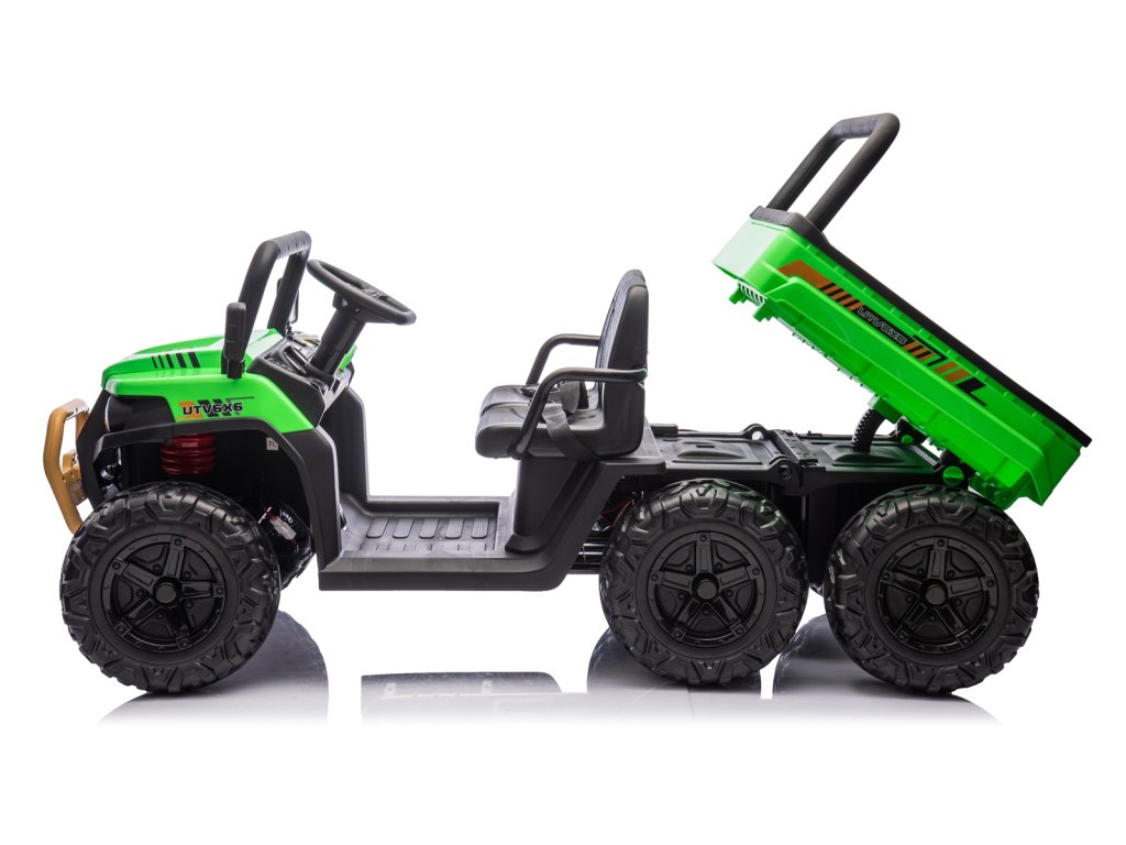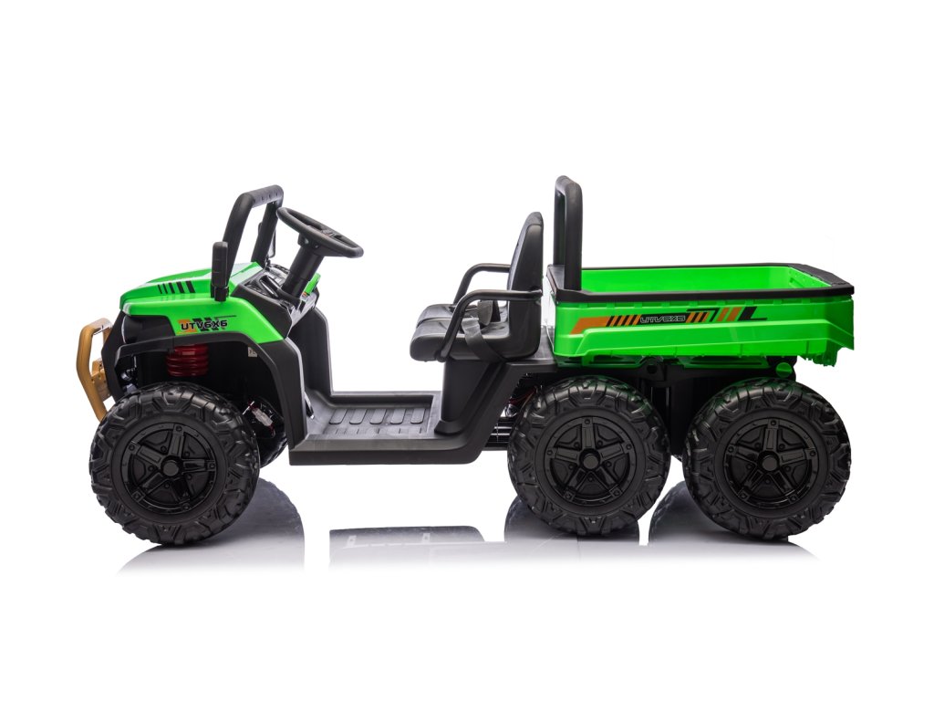Dětské elektrické autíčko UTV 6x4 v zelené barvě je skvělým společníkem pro všechny malé průzkumníky, kteří touží po dobrodružství. Vozítko disponuje šesti robustními EVA koly, z nichž čtyři jsou poháněna výkonnými motory o výkonu 200W každý. Díky pohonu 4 kol zvládá autíčko různé typy terénů a nabízí stabilní a bezpečnou jízdu.