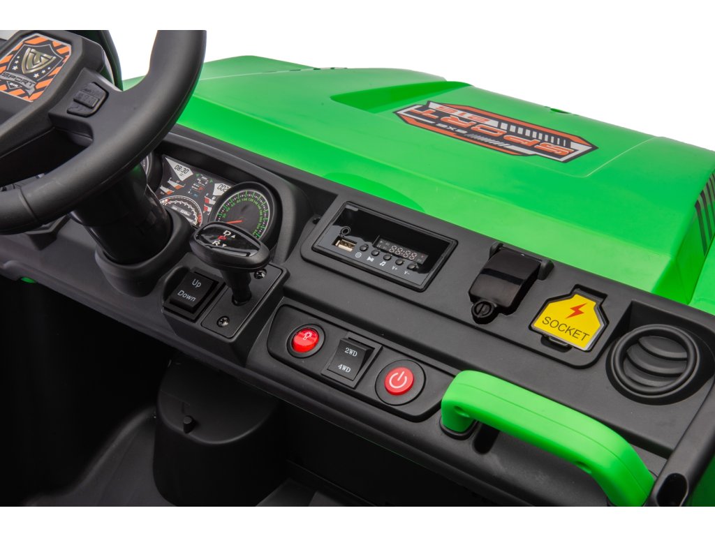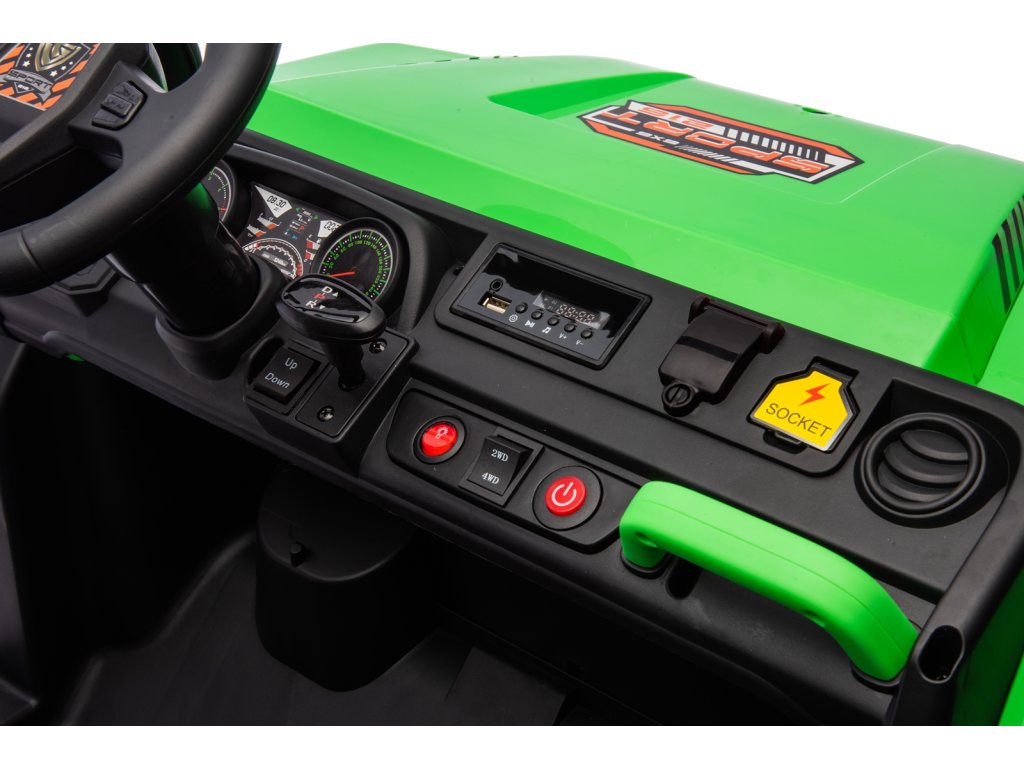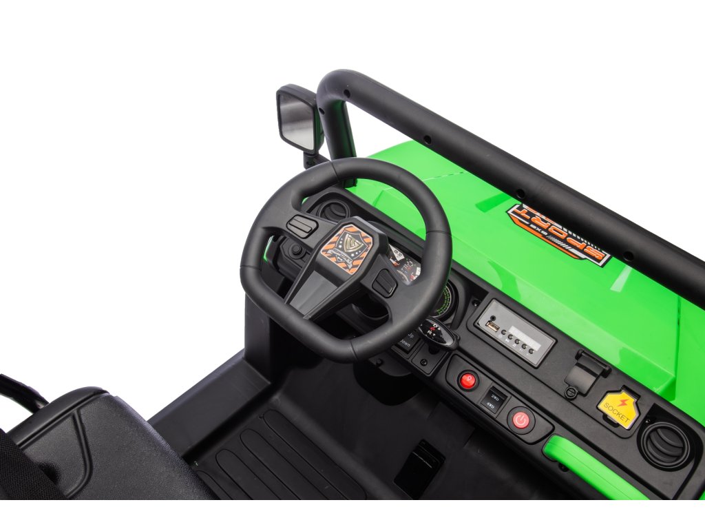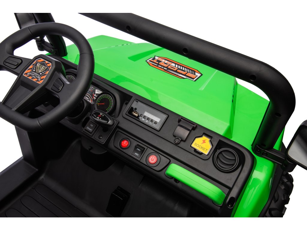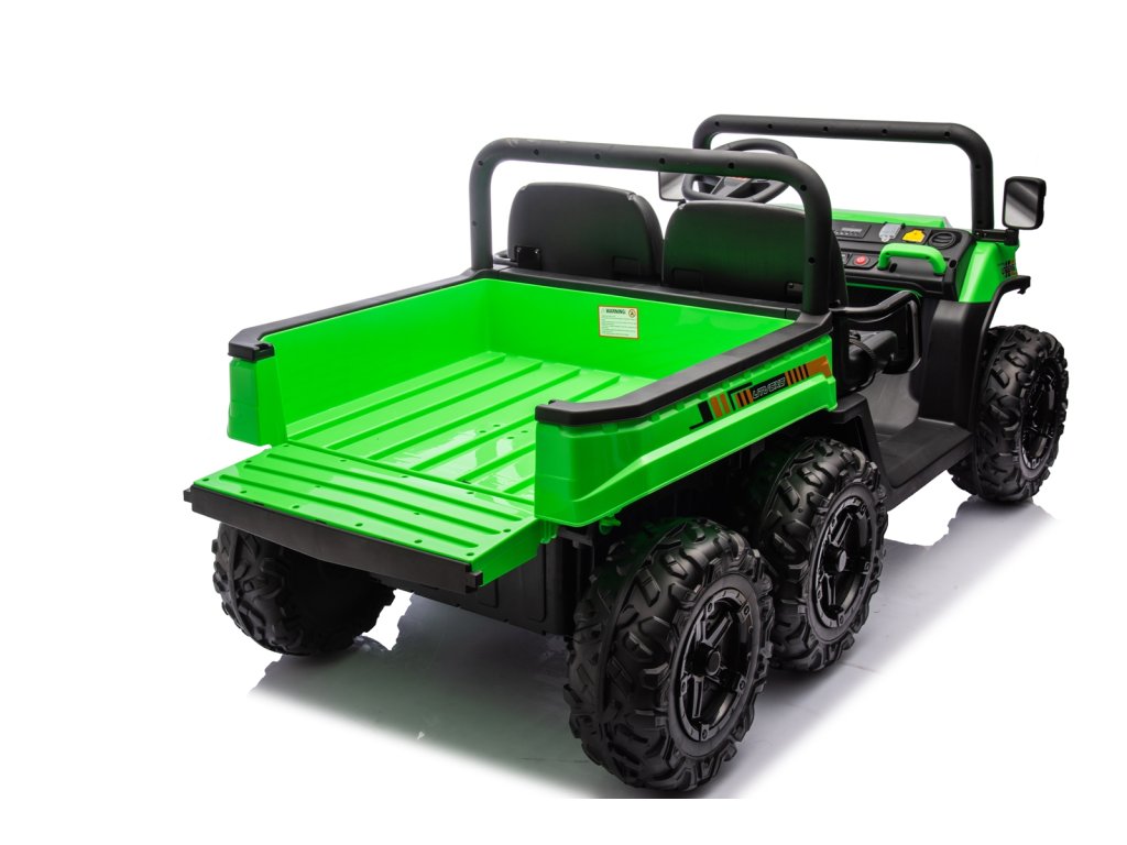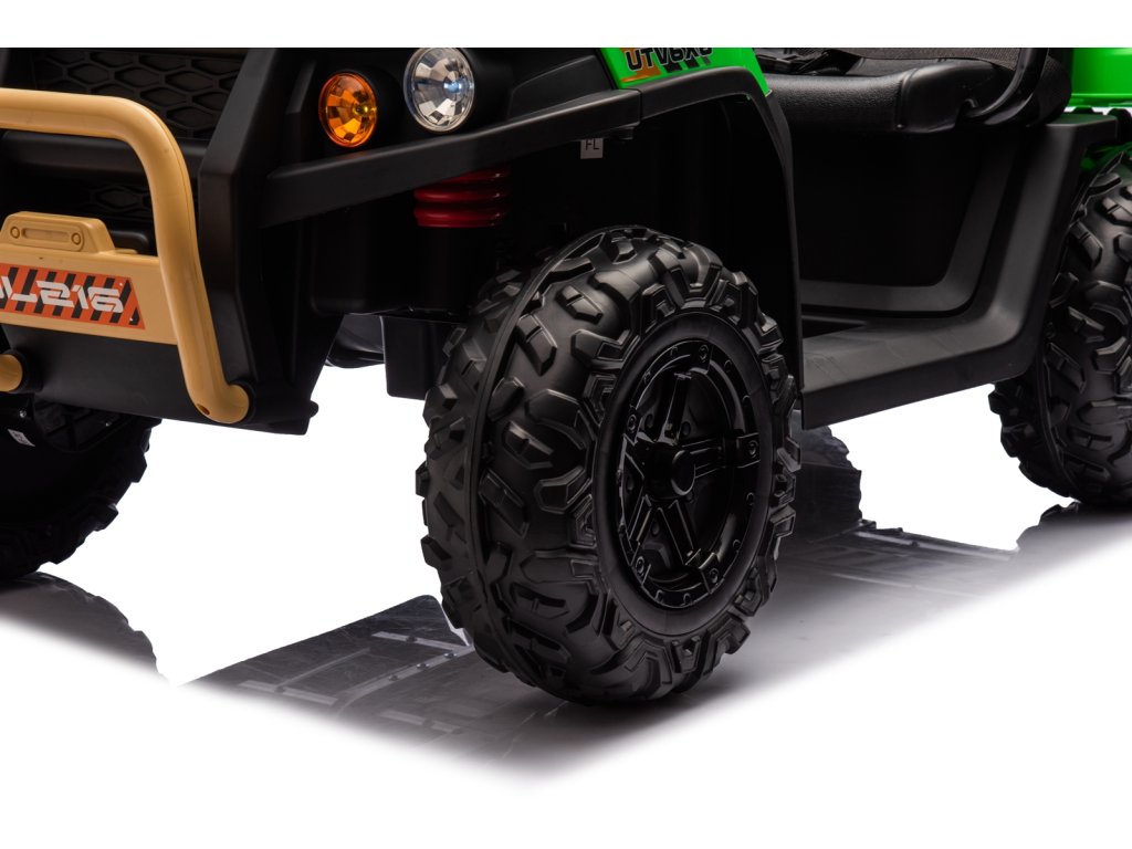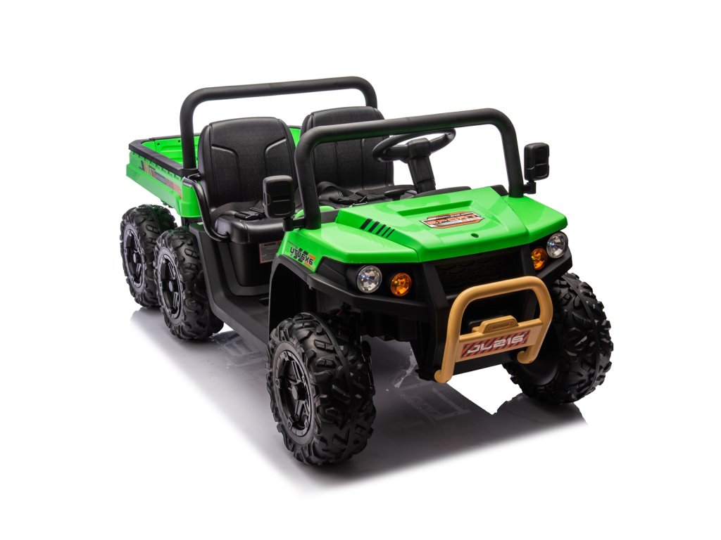 Dětské elektrické autíčko UTV 6x4 v zelené barvě je skvělým společníkem pro všechny malé průzkumníky, kteří touží po dobrodružství. Vozítko disponuje šesti robustními EVA koly, z nichž čtyři jsou poháněna výkonnými motory o výkonu 200W každý. Díky pohonu 4 kol zvládá autíčko různé typy terénů a nabízí stabilní a bezpečnou jízdu.