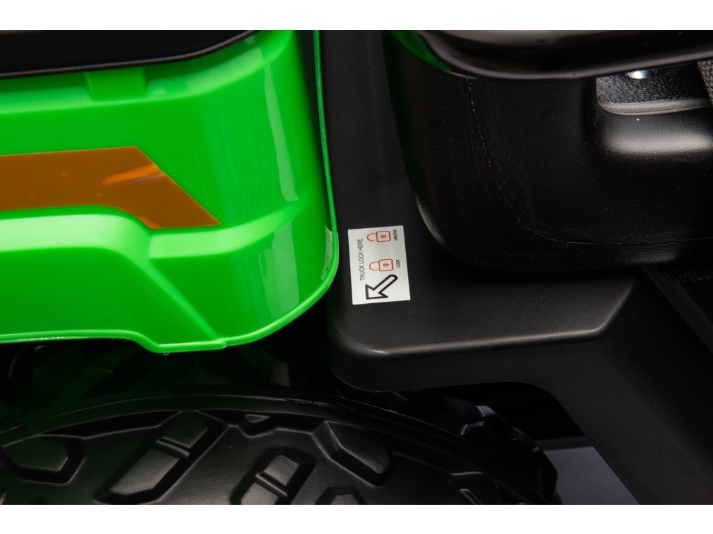 Elektrický sklápěč zadní korby přidává na atraktivitě a zábavě při hře. Autíčko dosahuje rychlosti 3-9 km/h a jeho baterie s kapacitou 24V/7Ah poskytuje až 90 minut jízdy. Plastové sedadlo umožňuje pohodlnou jízdu až pro dvě děti. Tento model je vhodný pro děti od 3 do 8 let a má maximální nosnost 35 kg.