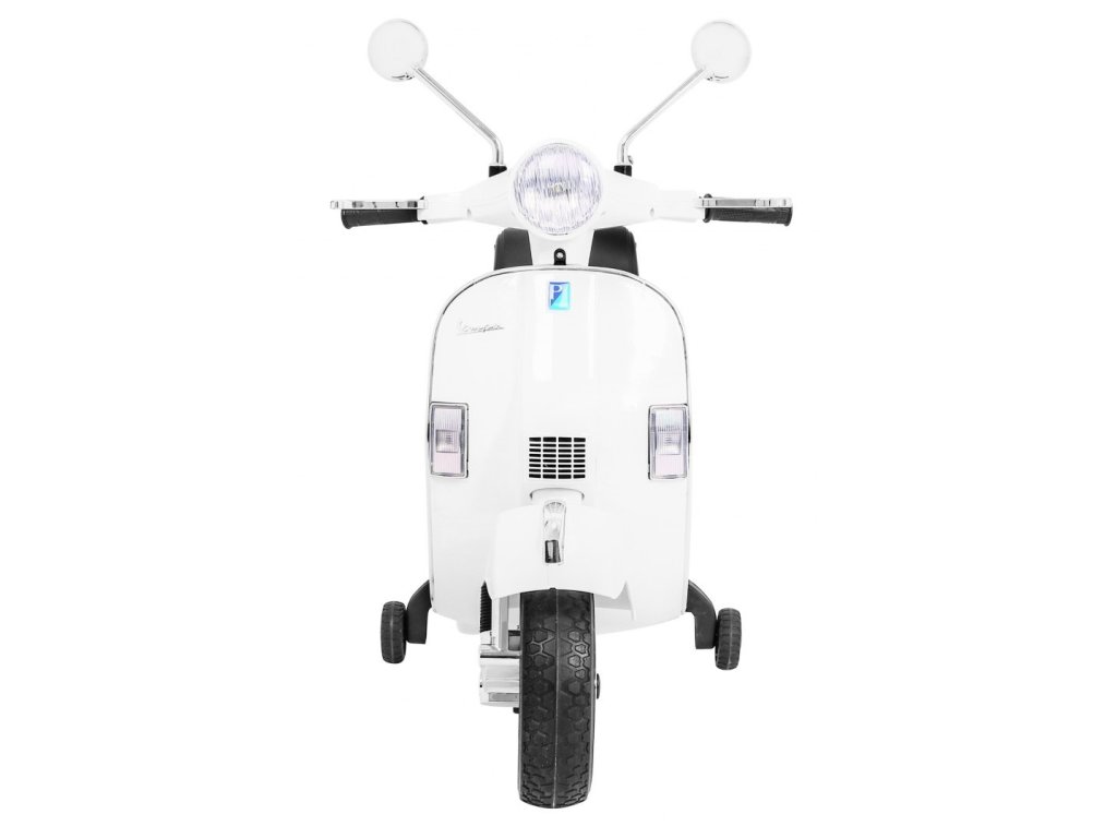 Kdo by neznal skútr značky Vespa? Tento legendární skútr může řídit i Vaše dítě, a to díky tomuto licencovanému modelu. Skútr má kvalitní sedadlo potažené měkkou ekologickou kůží a měkká kola EVA. K tomu všemu krásné přední a zadní LED světla a dokáže přehrávat MP3 soubory, takže si dítě může za jízdy poslechnout svou oblíbenou písničku a zároveň zdokonalovat své řidičské schopnosti.
