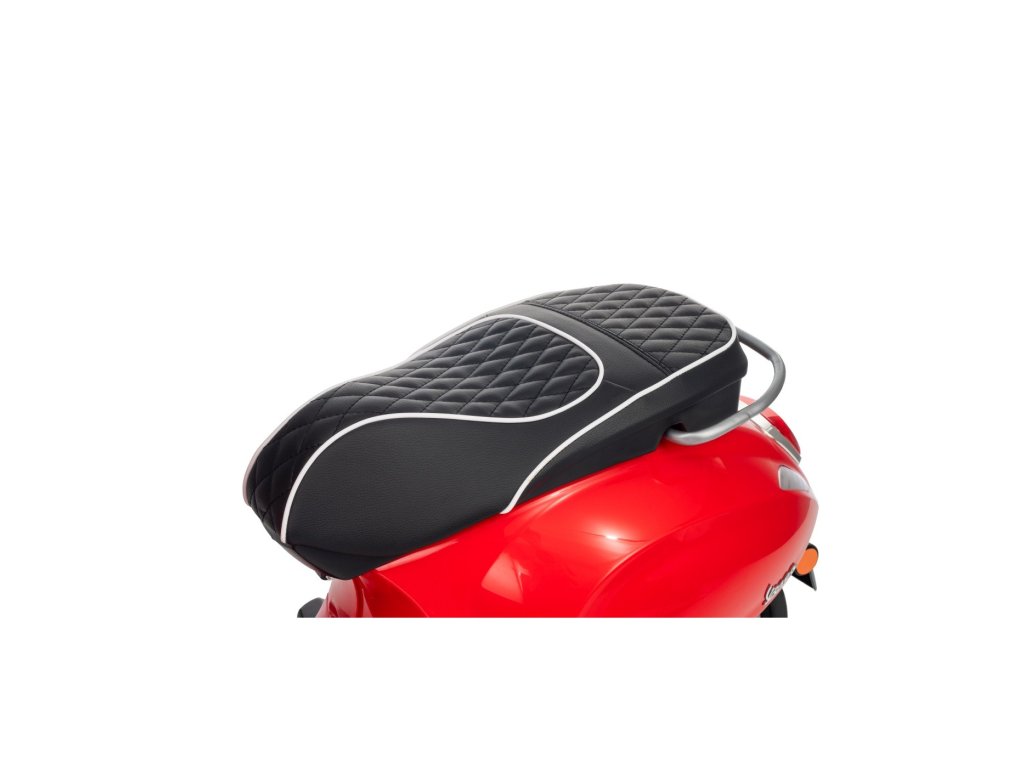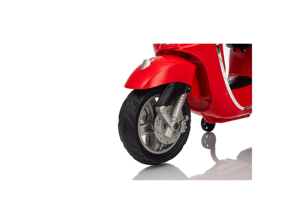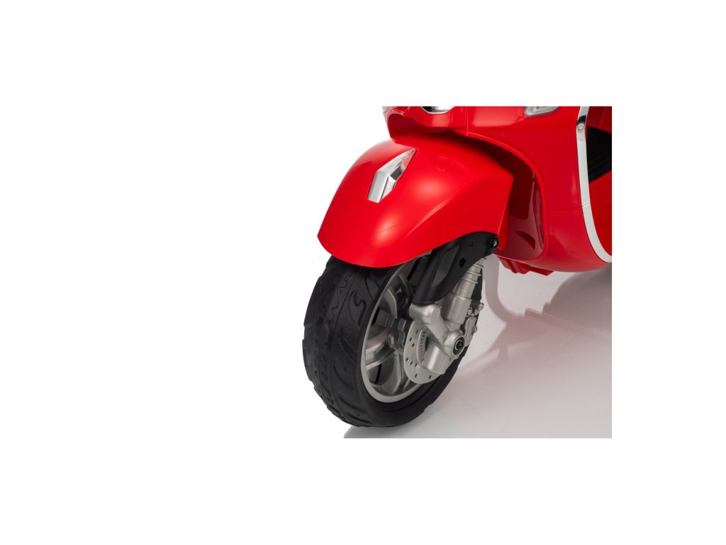 Kdo by neznal skútr značky Vespa? Tento legendární skútr může řídit i Vaše dítě, a to díky tomuto licencovanému modelu. Skútr má kvalitní sedadlo potažené měkkou ekologickou kůží a měkká kola EVA. K tomu všemu krásné přední a zadní LED světla a dokáže přehrávat MP3 soubory, takže si dítě může za jízdy poslechnout svou oblíbenou písničku a zároveň zdokonalovat své řidičské schopnosti.