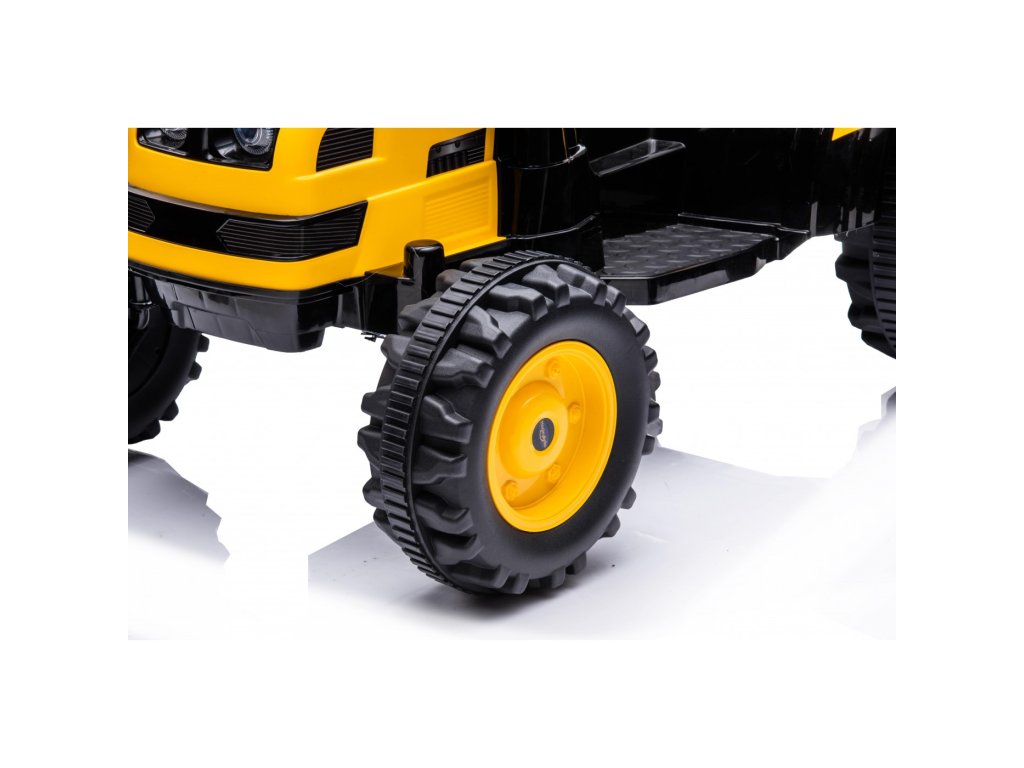 Dětský elektrický traktor má dva motory s výkonem 35W a baterii s kapacitou 12V 7Ah. Dítě se posadí do pohodlně tvarované sedačky. Jízdu jistě zpříjemní zvukové i svítící efekty. Traktor je vybaven hudebním panelem s MP3, FM Radiem, USB, Bluetoothem a předehranými melodiemi. Traktor má lopatu, která se spouští a zvedá a rameno pracuje v rovině nahoru/dolů.