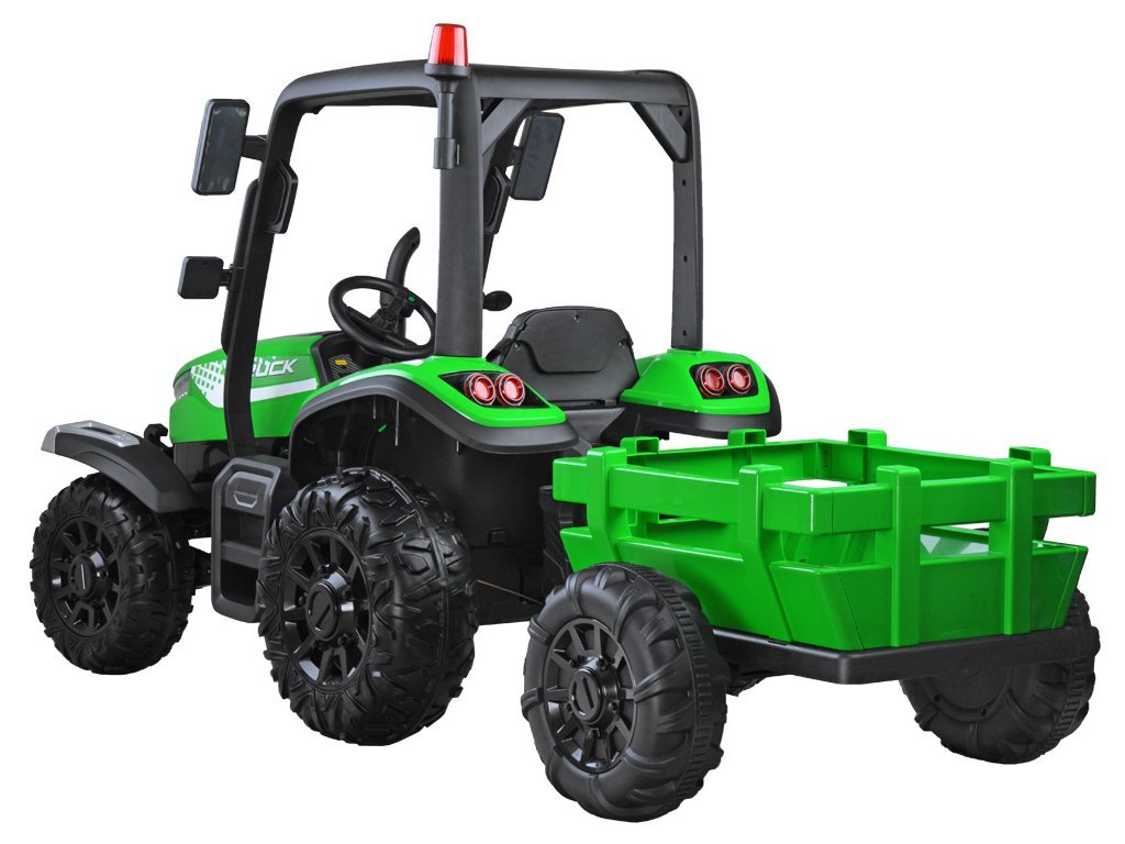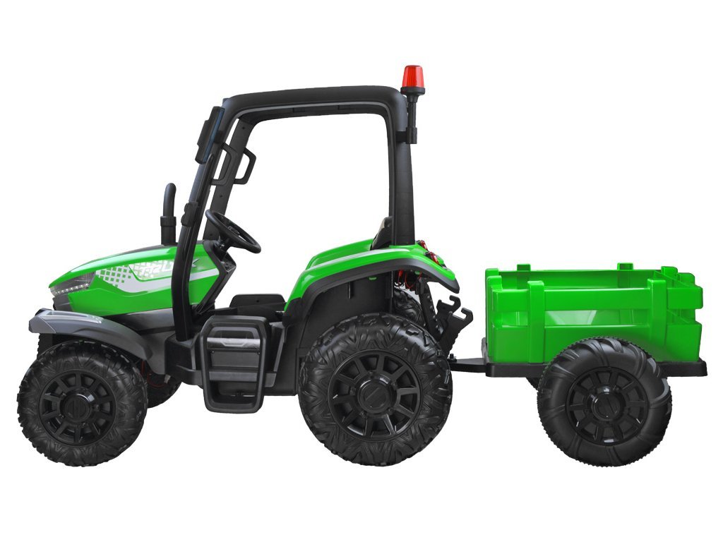 Dětský elektrický traktor BLT s ultra výkonným elektrickým motorem 2x200W a velkými EVA pěnovými koly hravě zvládne i nerovný terén.