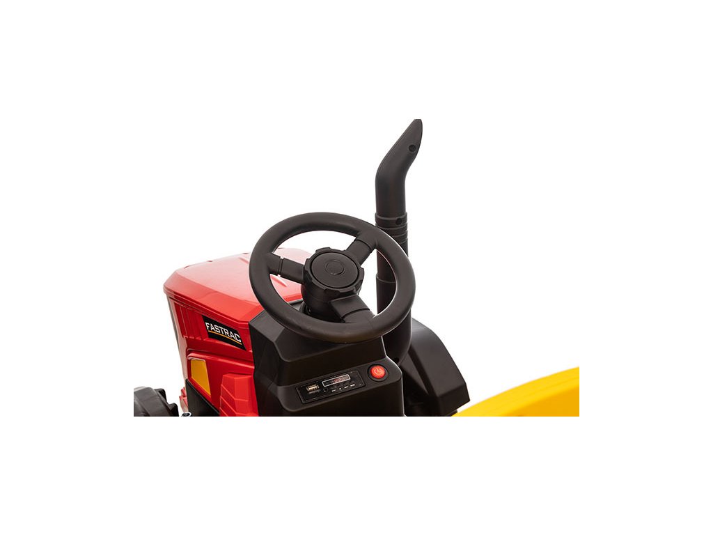 Pohodlné sedadlo s bezpečnostními pásy zajišťuje bezpečí dítěte během jízdy. Hudební panel s USB, AUX vstupem a slotem pro paměťovou kartu nabízí zábavu a interaktivitu. Přední světla přispívají k realističtějšímu vzhledu traktoru.