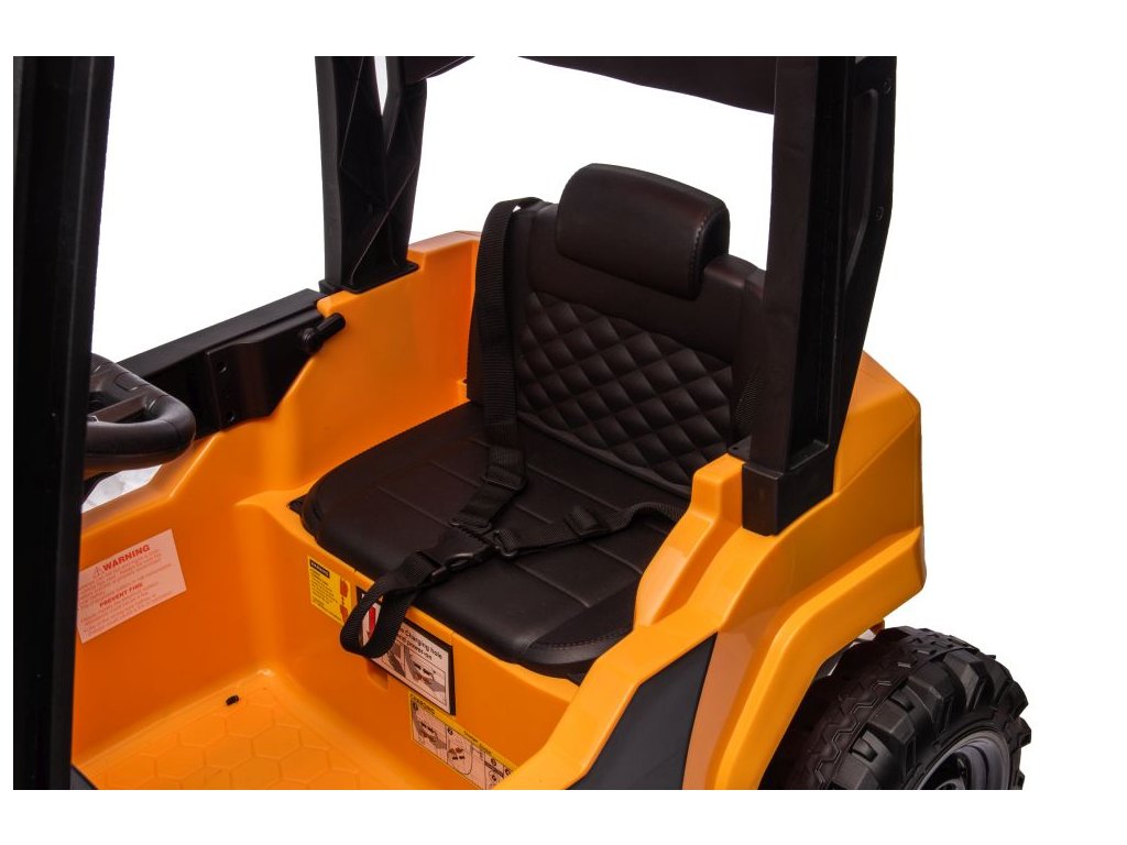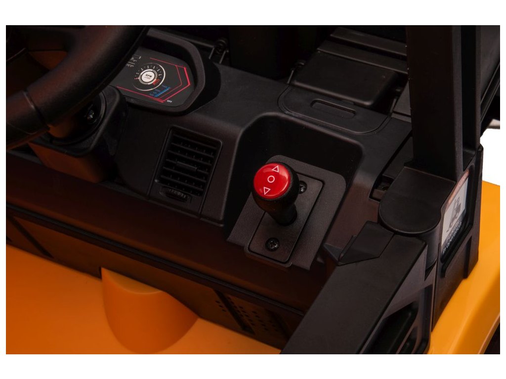 Dětský elektrický vysokozdvižný vozík je vybaven dvěma motory o celkovém výkonu 90W a širokými koly.
