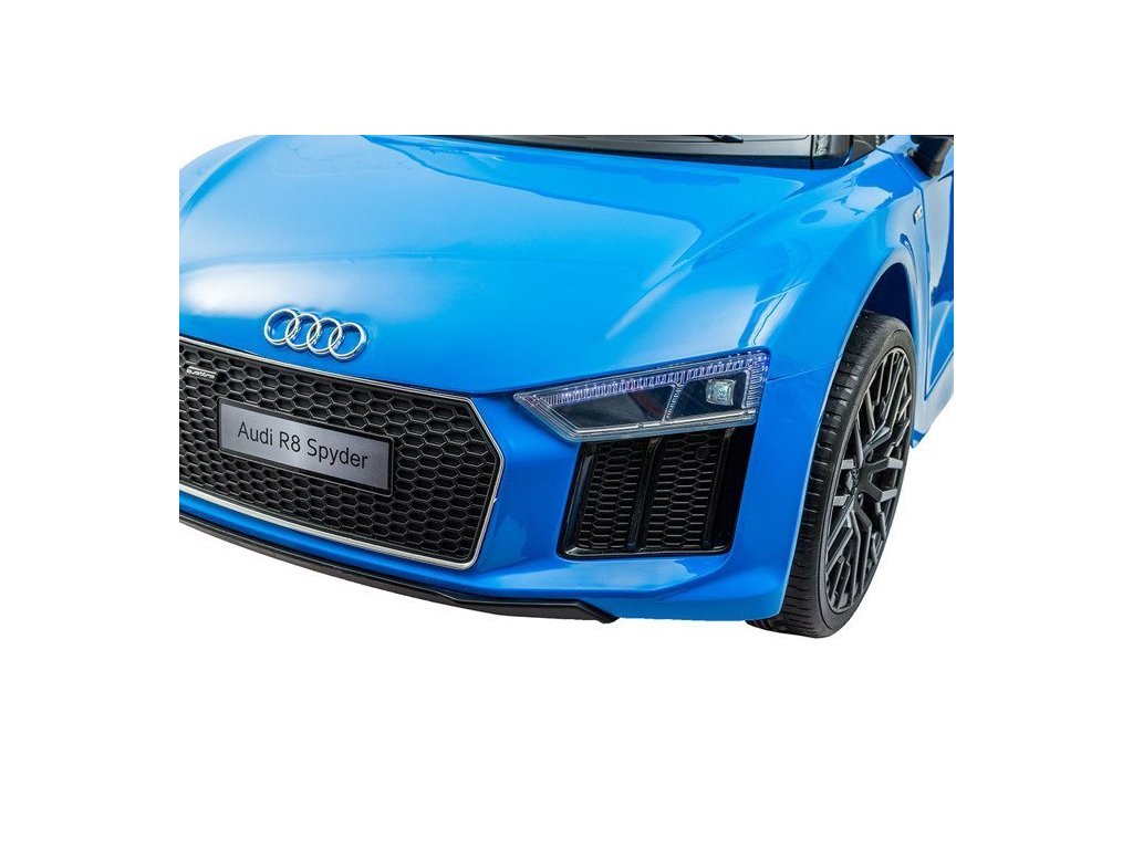 Dětské elektrické autíčko Audi R8 Spyder přijíždí na pěnových EVA kolech, která jsou tichá a při jízdě neruší. Hudební panel je vybaven vstupem MP3, USB, SD a předem nahranou hudbou. Dítě se posadí do pohodlně tvarované sedačky s bezpečnostními pásy z ekologické kůže.