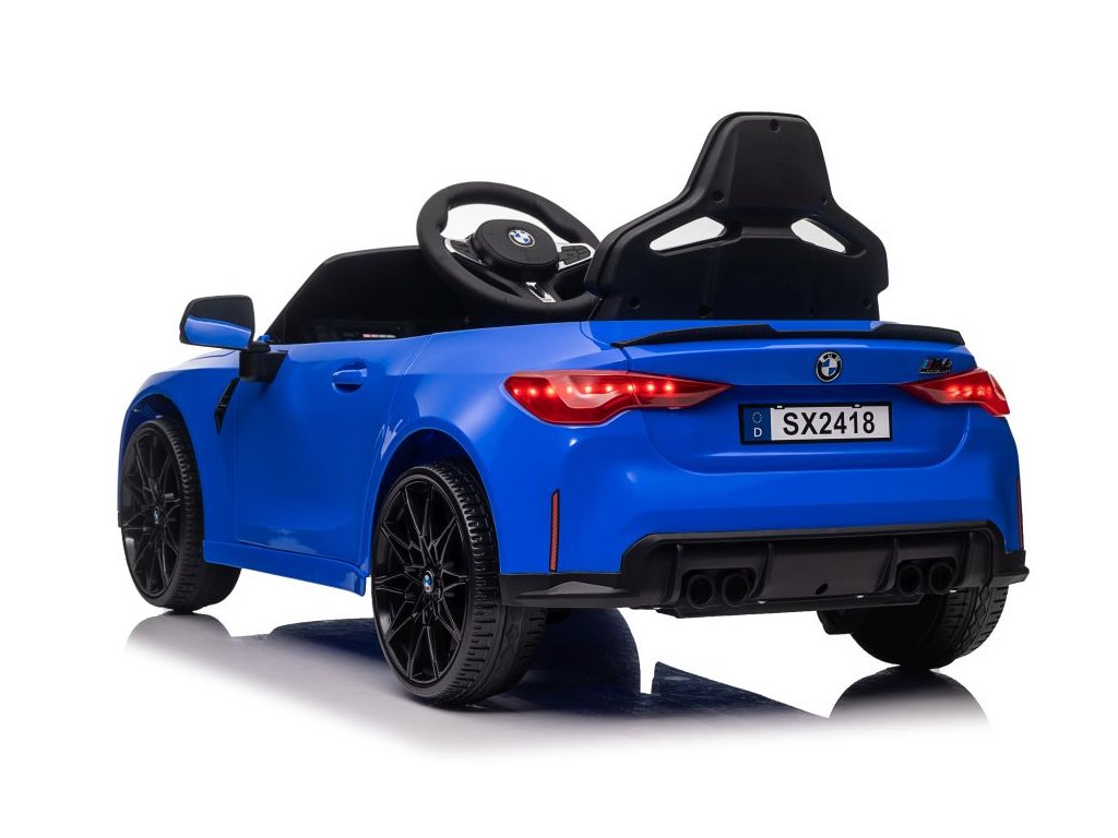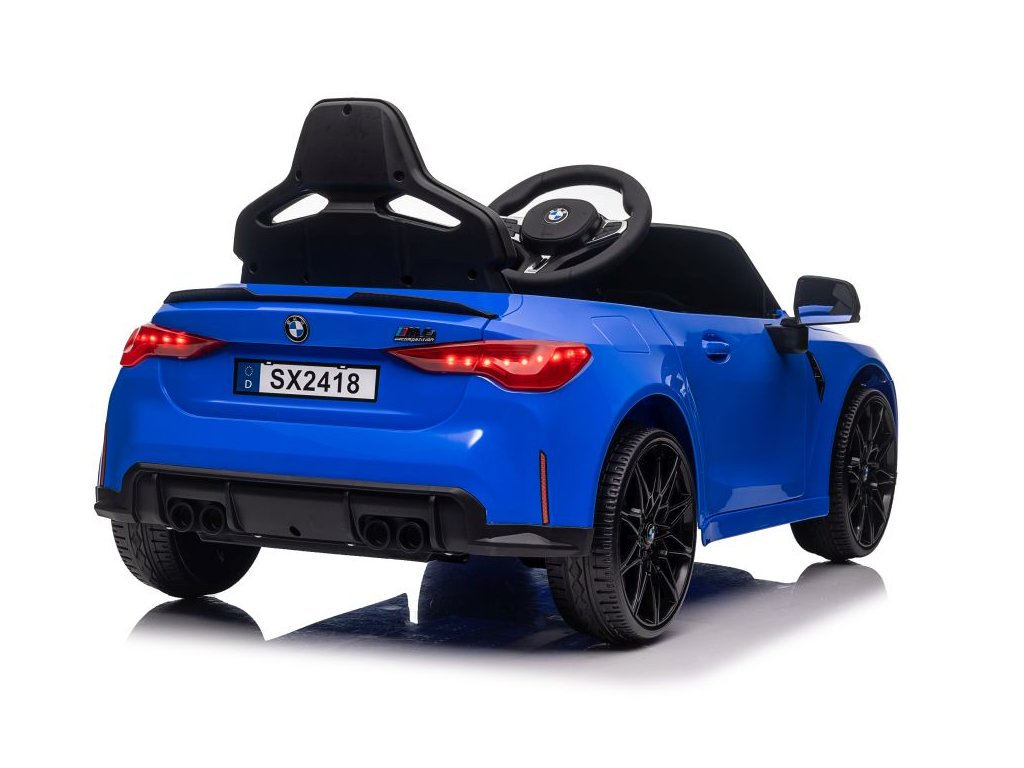 Dětské licencované autíčko BMW M4 přijíždí na měkkých pěnových EVA kolech, která jsou tichá a přizpůsobí se různým typům terénu. Dítě se posadí do pohodlně tvarované sedačky z ekologické kůže a o bezpečnost se postarají bezpečnostní pásy.