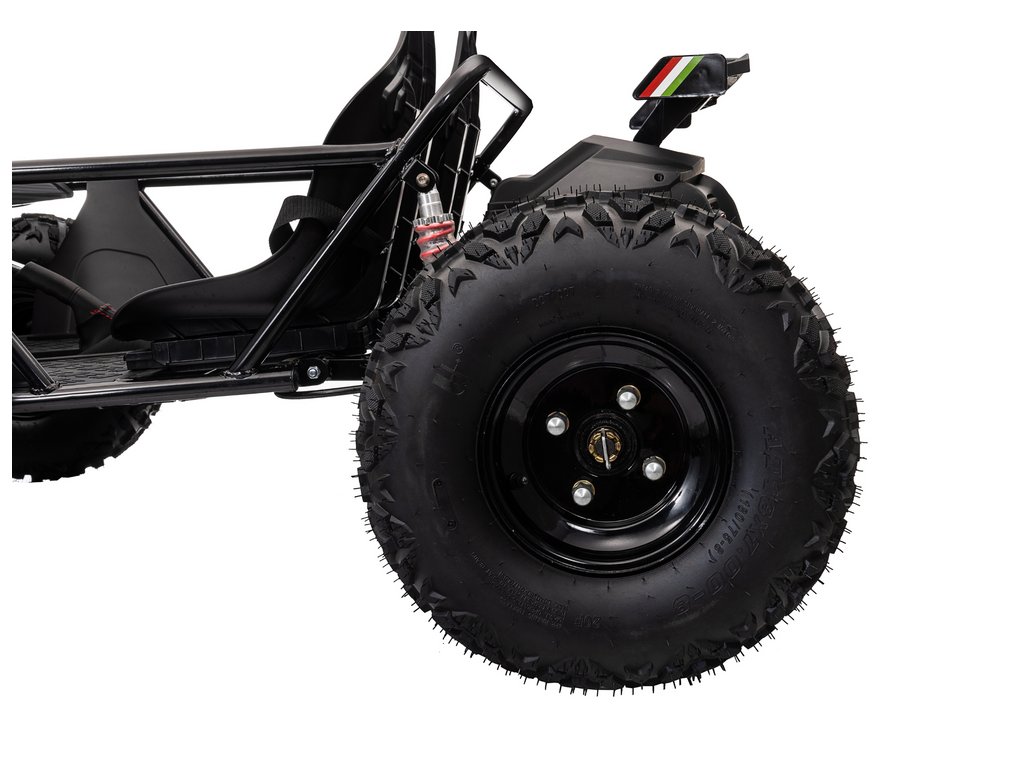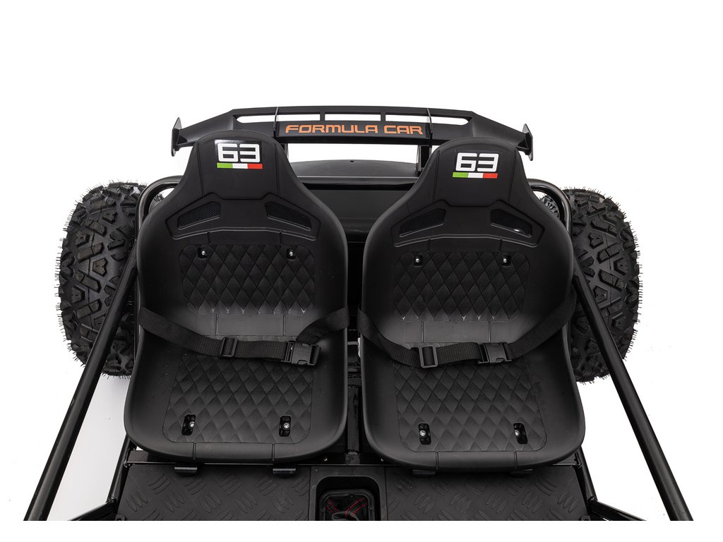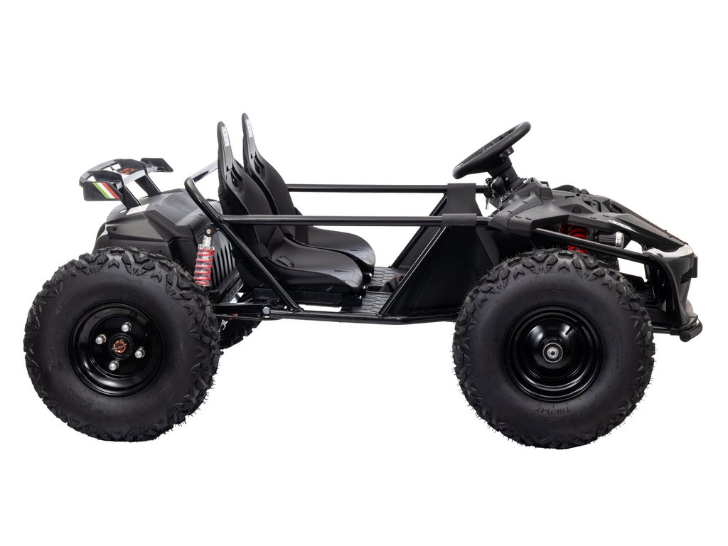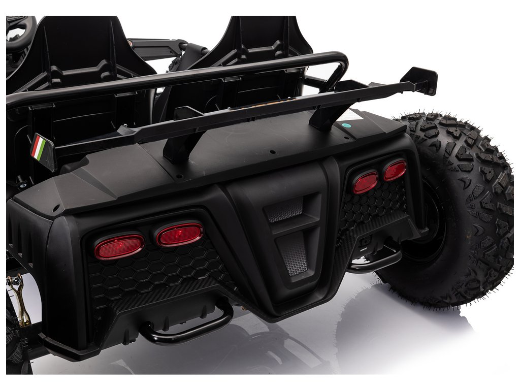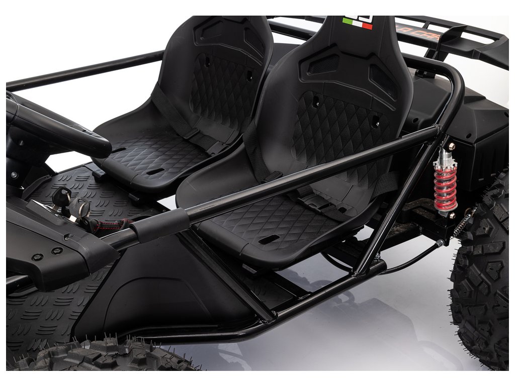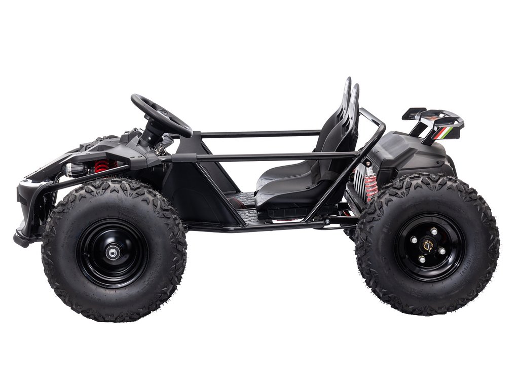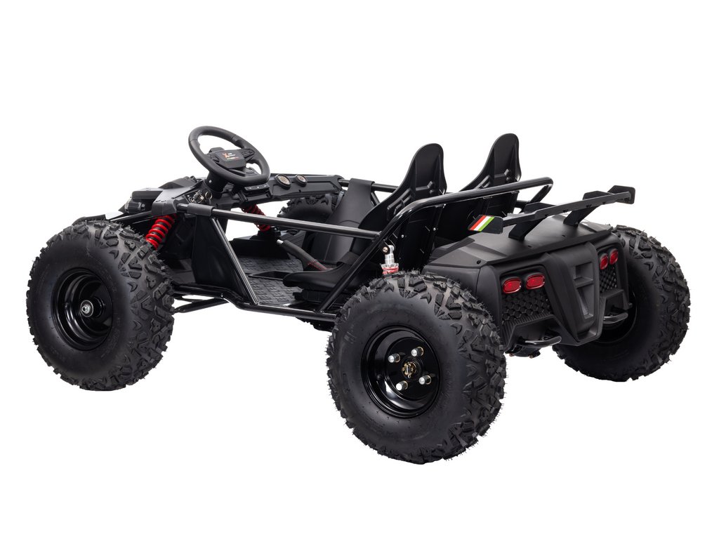 Elektrické autíčko Buggy XXL s motorem o výkonu 800W a bateriemi 4x12V 20Ah je určeno pro dvě osoby. Autíčko má nosnost až 150 kg. Sedadla jsou potaženy ekologickou kůži a mají bezpečnostní pásy.
