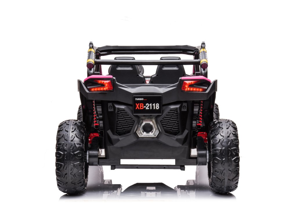 Elektrické autíčko Buggy Turbo se čtyřmi silnými motory o celkovém výkonu 800 W nesmí chybět v žádné dětské garáži. Autíčko je poháněno baterií s kapacitou 24V 7Ah. Maximální zatížení vozítka je 60 kg. Při startování uslyšíte zvuky motoru a během jízdy dítě určitě zaujme hudební panel s rádiem, MP3, předehranými melodiemi, a navíc se jde k hudebnímu panelu připojit pomocí bluetooth.