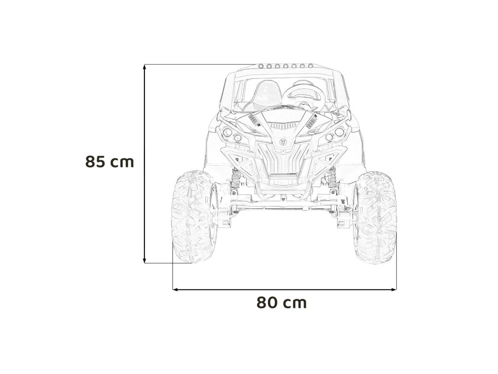 Dětské autíčko Buggy UTV-MX 2000N přijíždí na měkkých pěnových EVA kolech, která jsou tichá a přizpůsobí se různým typům terénu. Dítě se posadí do pohodlně tvarované sedačky z ekologické kůže a o bezpečnost se postarají bezpečnostní pásy.