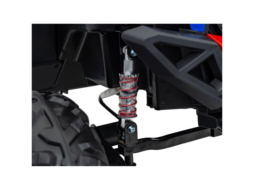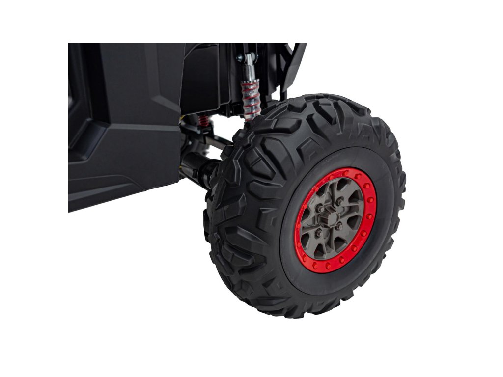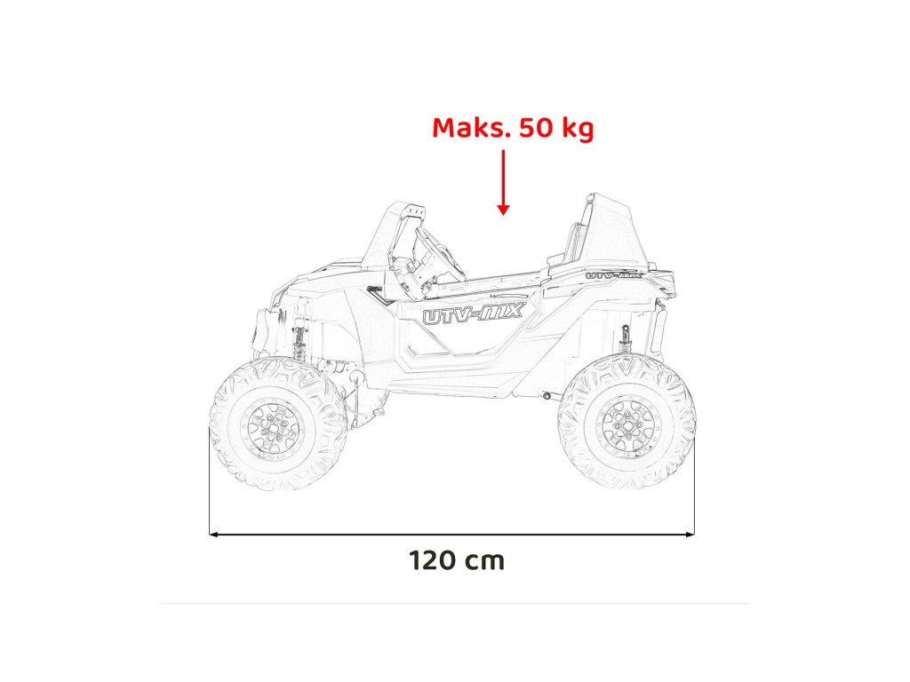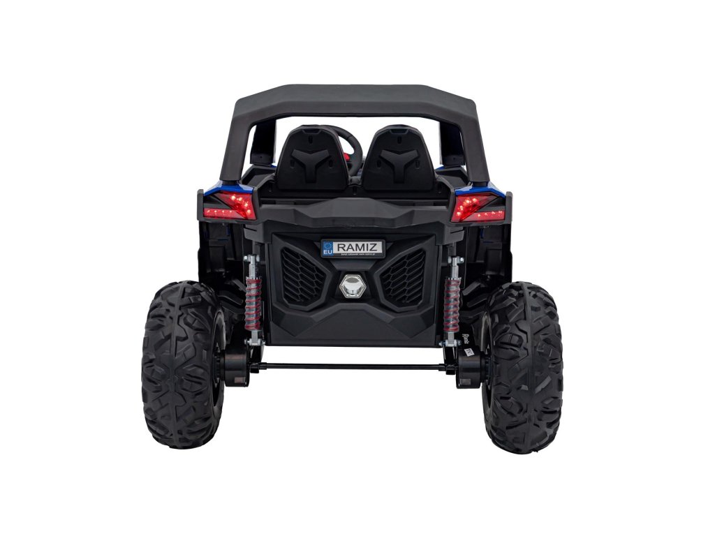 Dětské autíčko Buggy UTV-MX 2000N přijíždí na měkkých pěnových EVA kolech, která jsou tichá a přizpůsobí se různým typům terénu. Dítě se posadí do pohodlně tvarované sedačky z ekologické kůže a o bezpečnost se postarají bezpečnostní pásy.