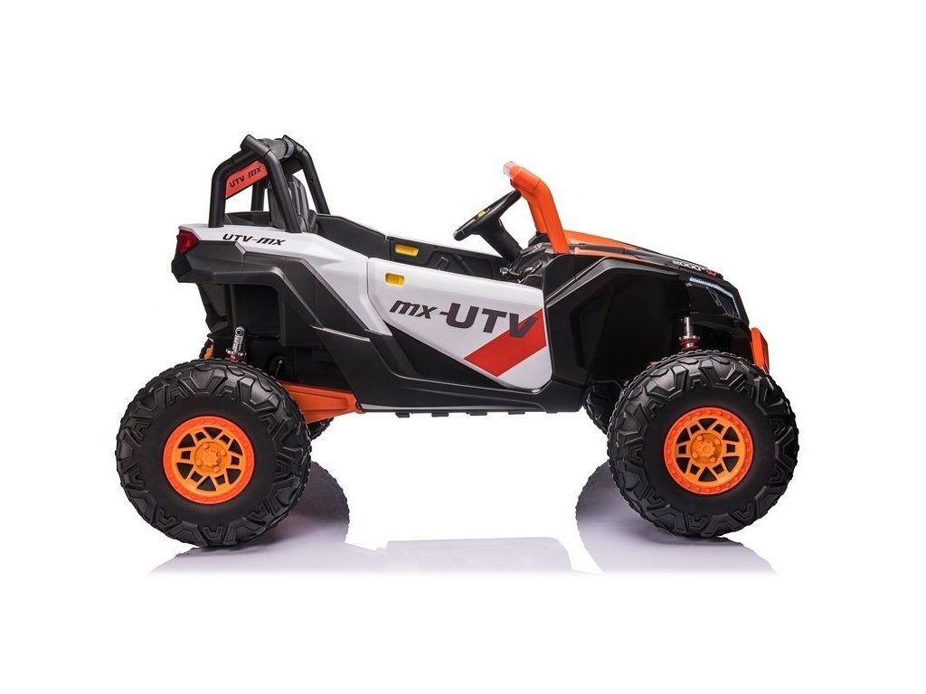 Dětská elektrická Buggy UTV-MX se čtyřmi výkonnými elektrickými motory 60W a baterií 24V 7Ah. O pohodlnou jízdu se postarají velká pěnová EVA kola, která společně s motory zdolají terén či nezpevněný typ povrchu.