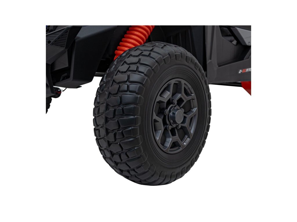 Elektrické autíčko Buggy UTV se silnými motory o celkovém výkonu 800W nesmí chybět v žádné dětské garáži. Autíčko je poháněno baterii s kapacitou 24V 9Ah. Maximální zatížení vozítka je 60 kg. Během jízdy dítě určitě zaujme hudební panel s MP3, Bluetooth a USB.