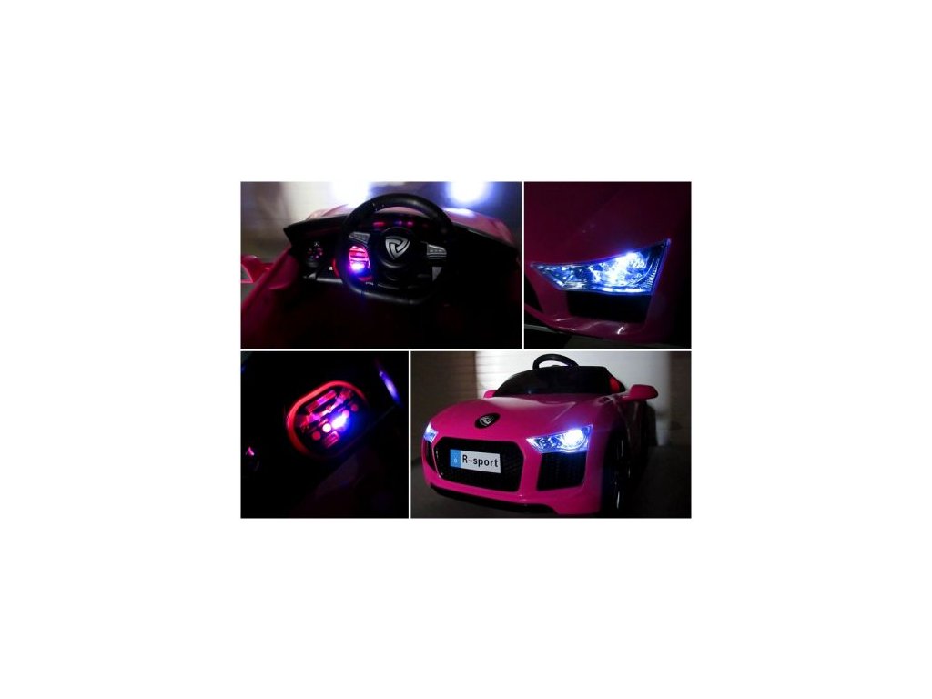 Interiér autíčka je vybaven sedadlem z eko-kůže s bezpečnostními pásy, hudebním panelem se vstupy AUX, MP3, USB a tlačítky s melodiemi. Na cestu si posvítíte předními LED světly.