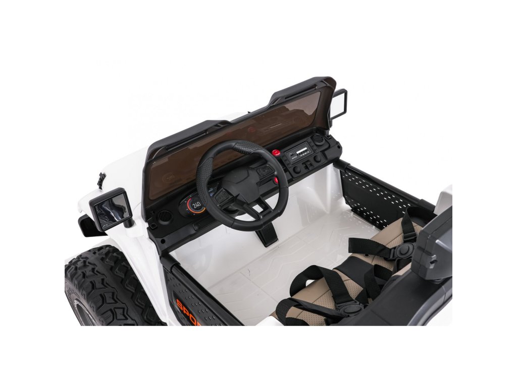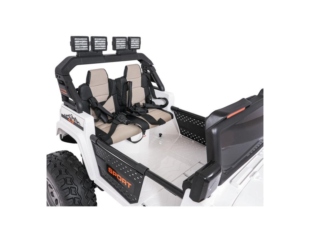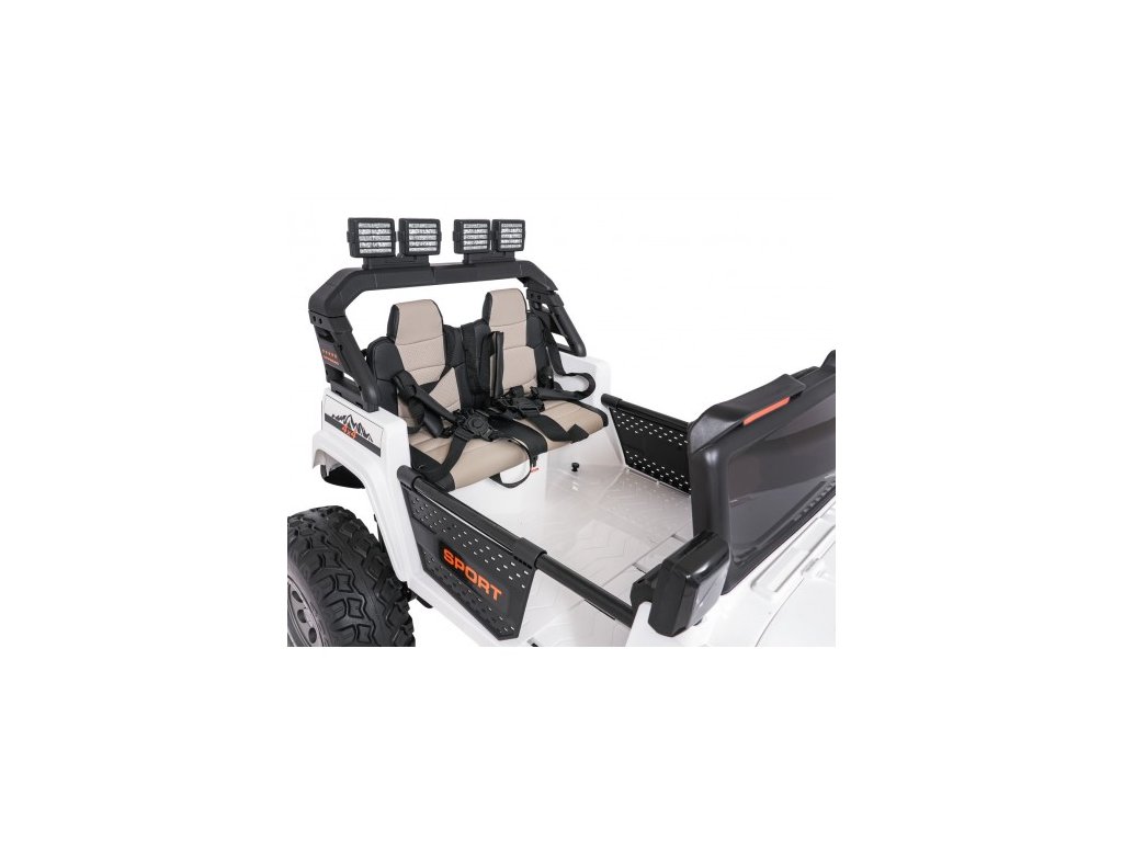 Elektrické autíčko Extreme Sport se čtyřmi motory o celkovém výkonu 960W nesmí chybět v žádné dětské garáži. Autíčko je poháněno baterii s kapacitou 2x12V7Ah. Maximální zatížení vozítka je 60 kg. Během jízdy dítě určitě zaujme hudební panel s MP3, Bluetooth, USB, AUX, Rádiem a vstupem pro SD kartu.